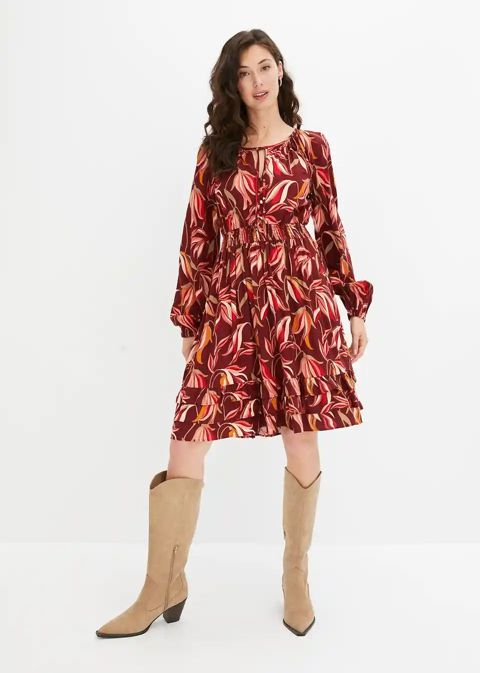 Haljina od viskozne tkanine s gustim naborima u struku u dužini do koljena
