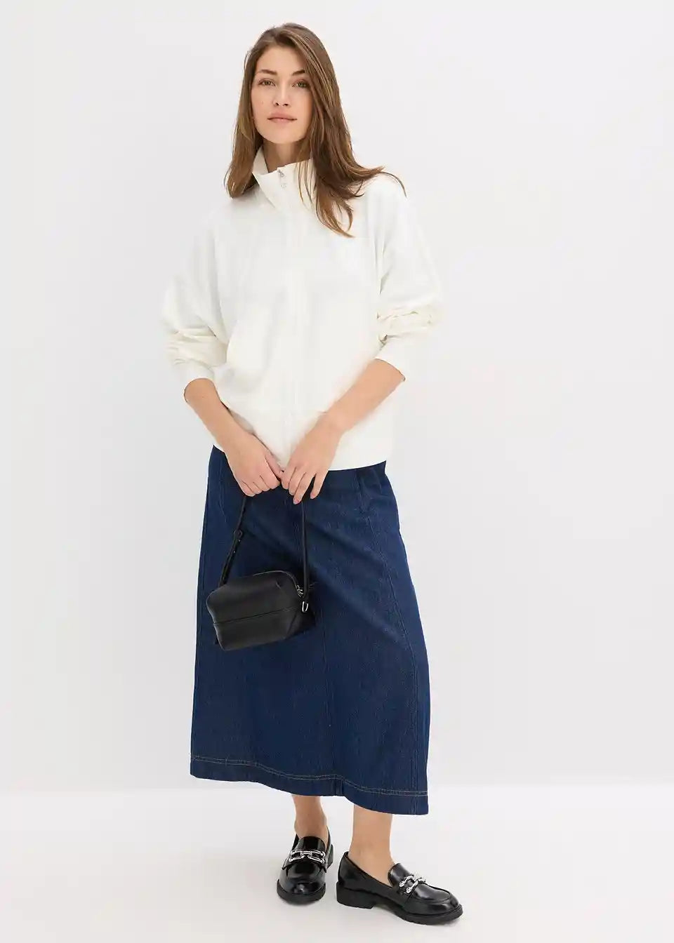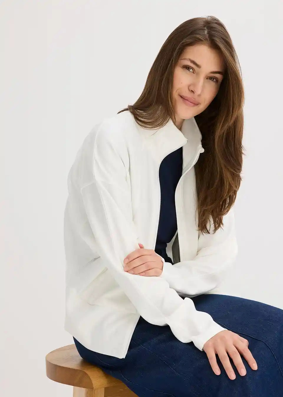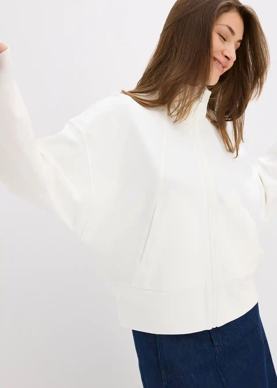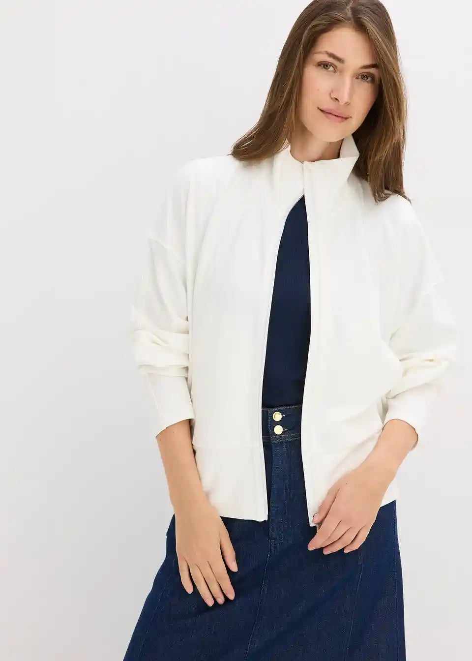 Sweat jakna s patentnim zatvaračem, visokim ovratnikom i skošenim paspuliranim džepovima sprijeda