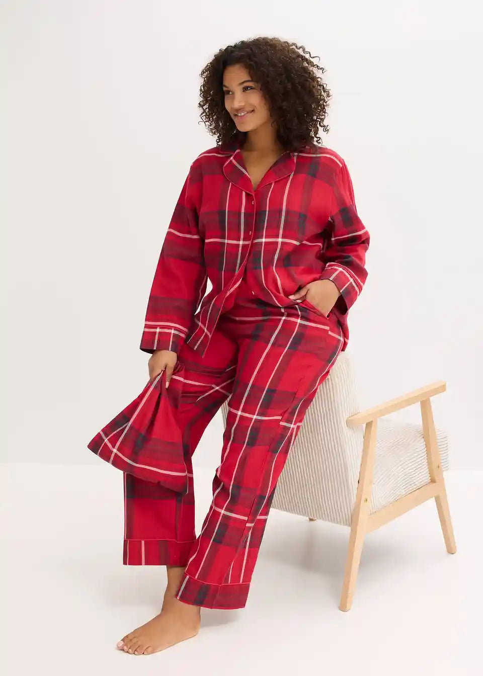 Tkani flanelasti pidžama s reverom i džepom na prsima, kao i džepovima na hlačama