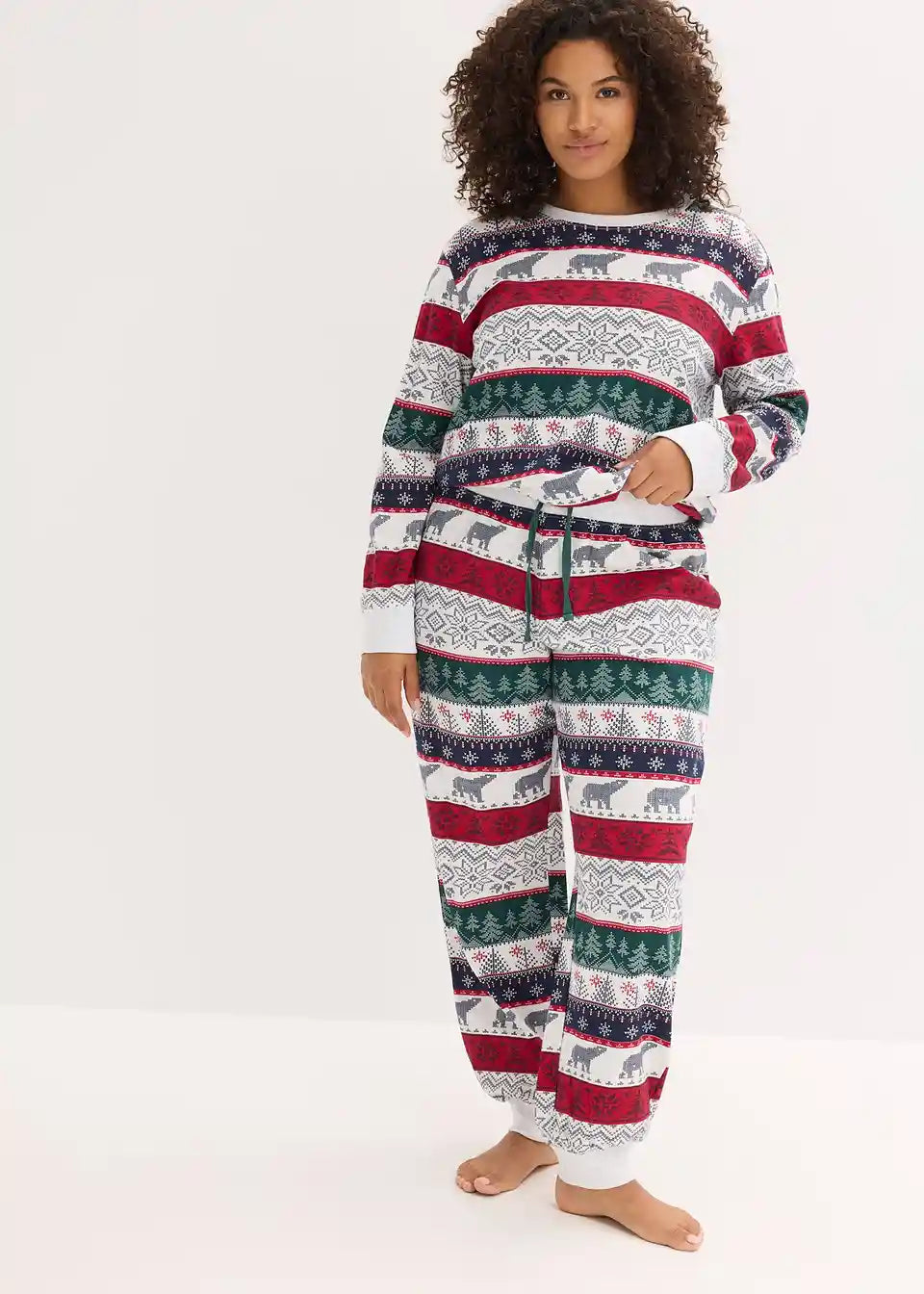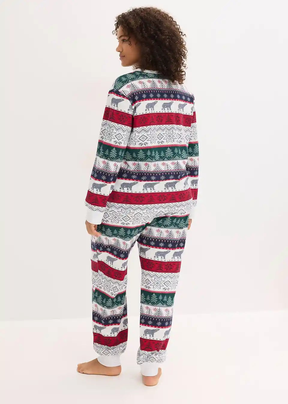 Udobna pidžama s norveškim tiskom s majicom dugih rukava s visokim ovratnikom i ležerno krojenim hlačama s džepovima