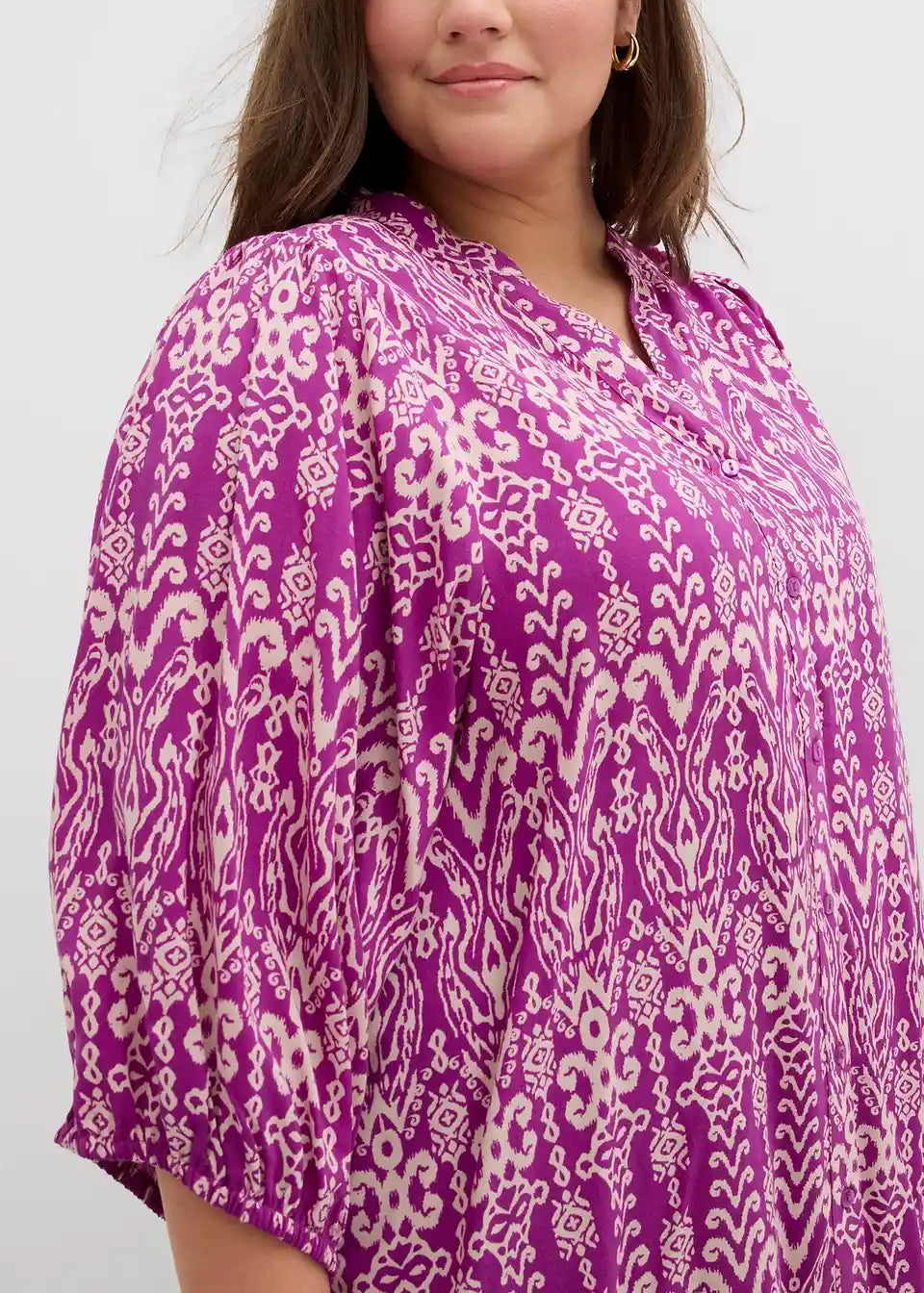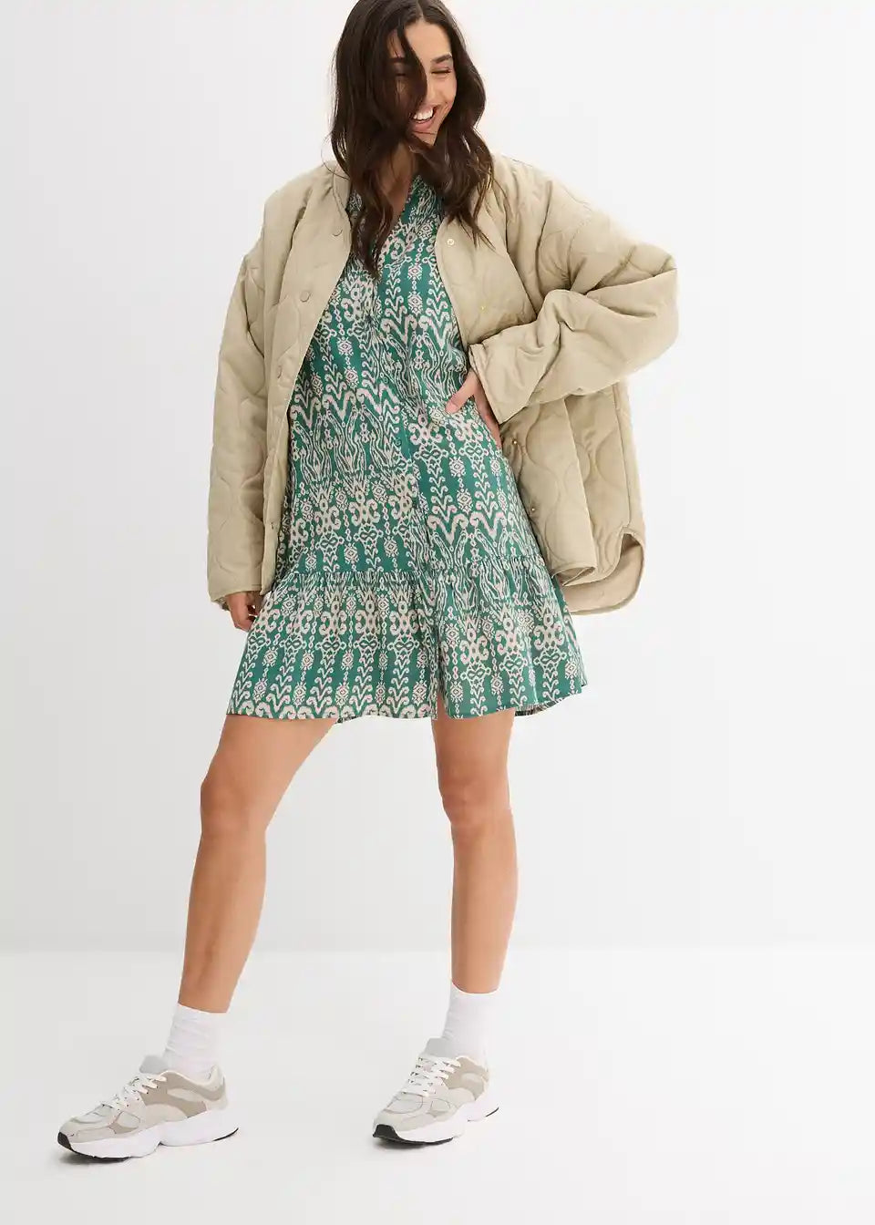izložena i kratka haljina s Henley ovratnikom i napuhanim rukavima