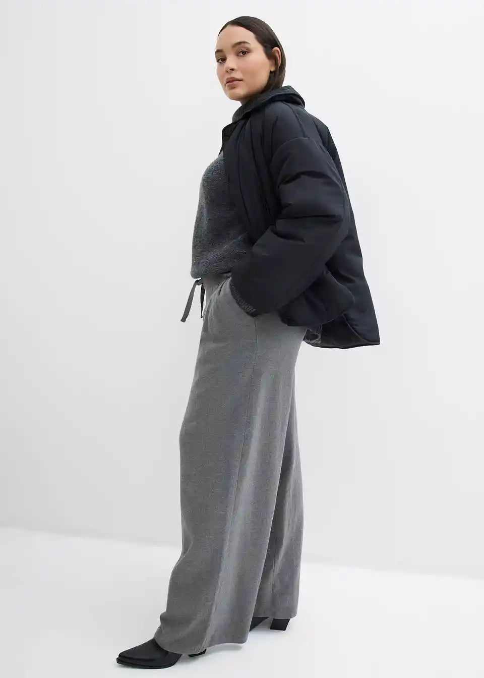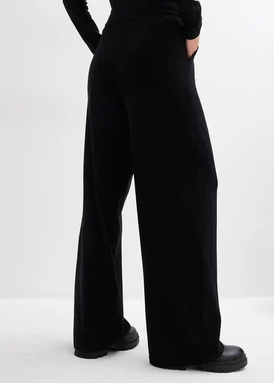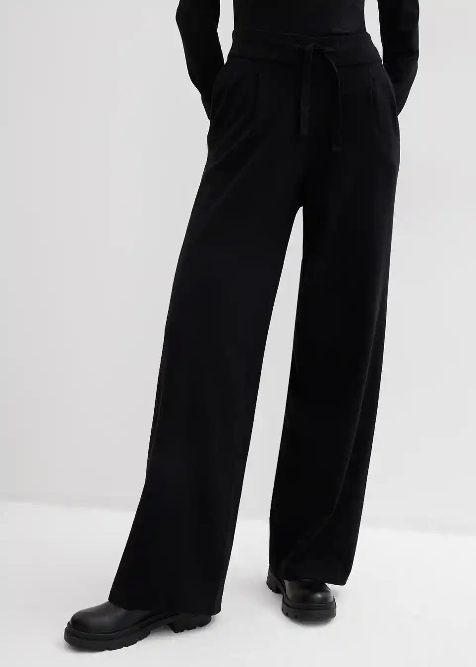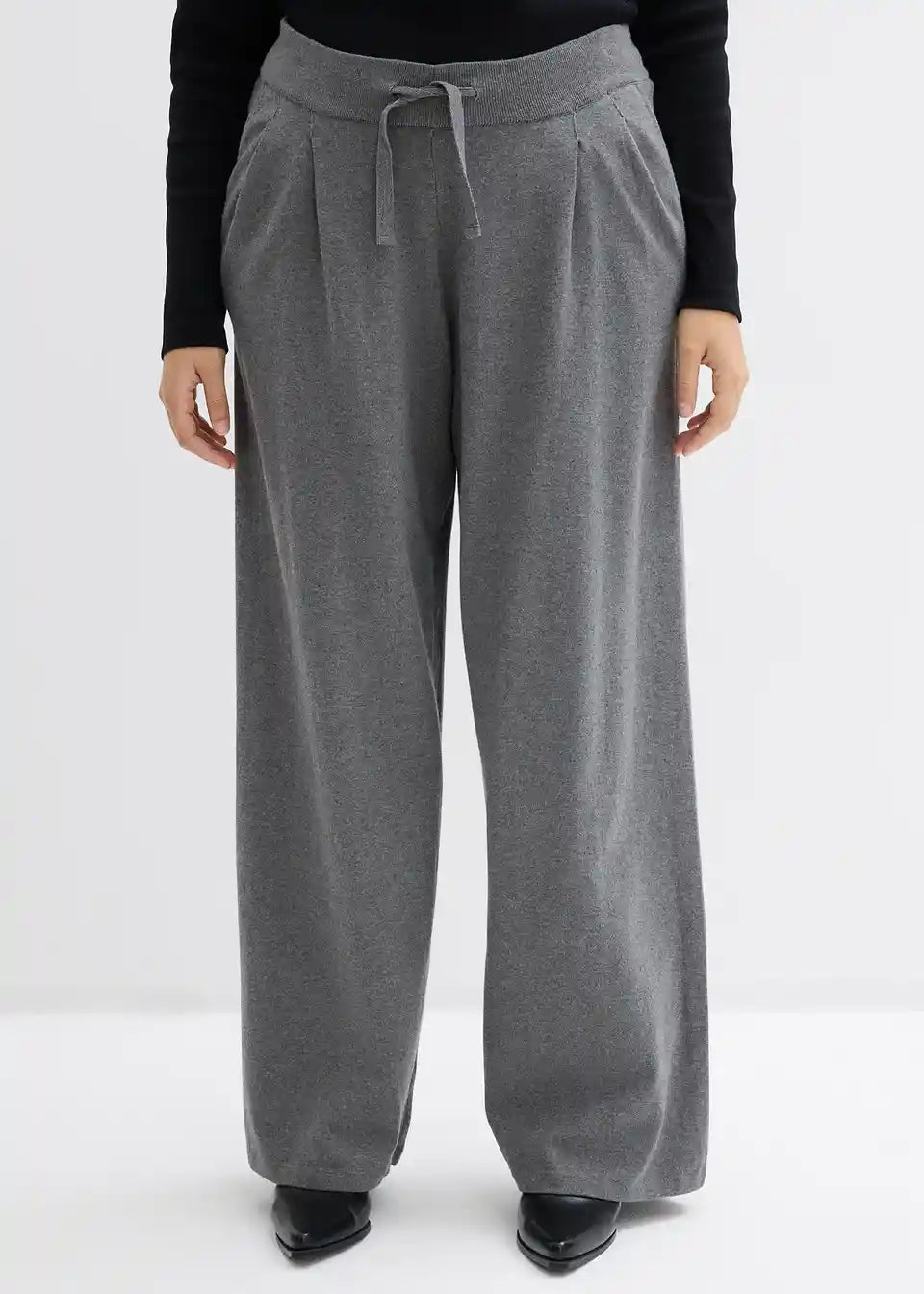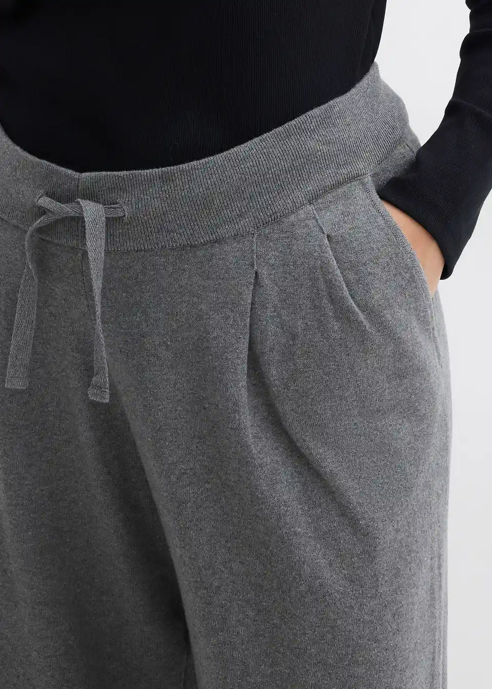 Hlače s ravnim nogavicama i elastičnim podesivim pojasom s vezicom od kašmir mješavine