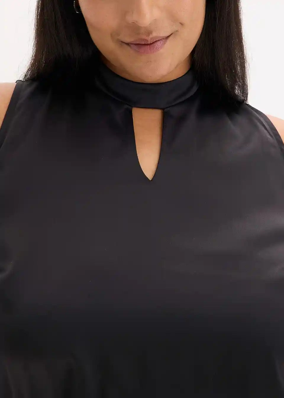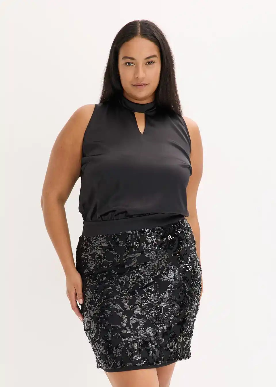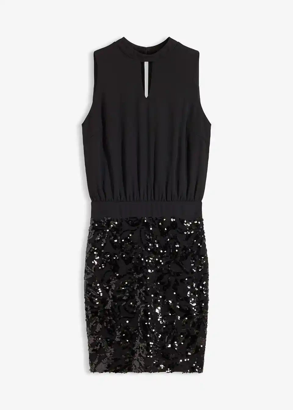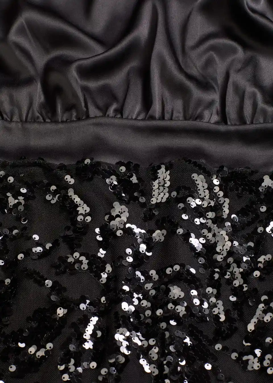 Moderno i ženstveno: Mini haljina s vezenim šljokicama na suknji i sjajnim gornjim dijelom.