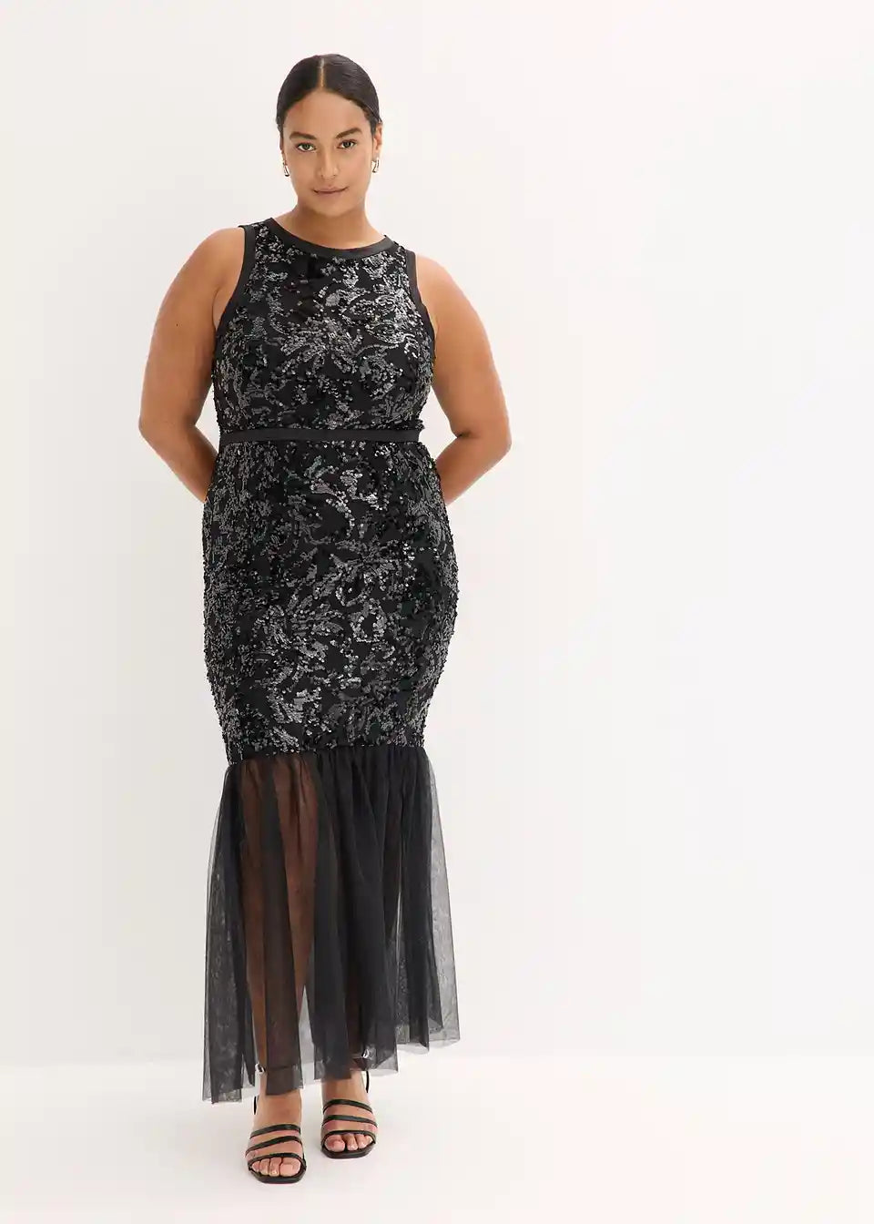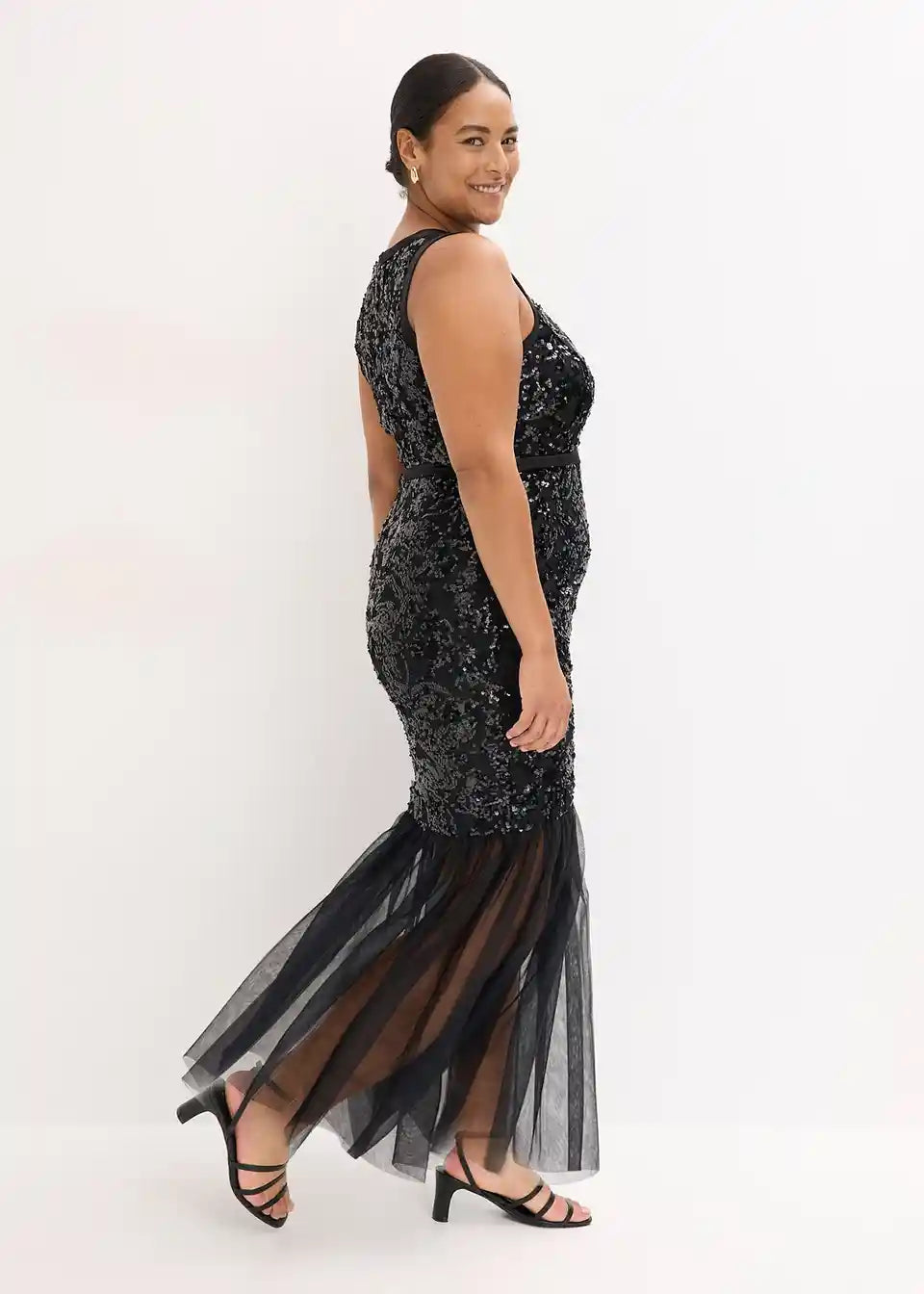 Moderno i ženstveno: Očaravajuća večernja haljina u obliku sirene s vezom od šljokica i volanima od nježnog tila