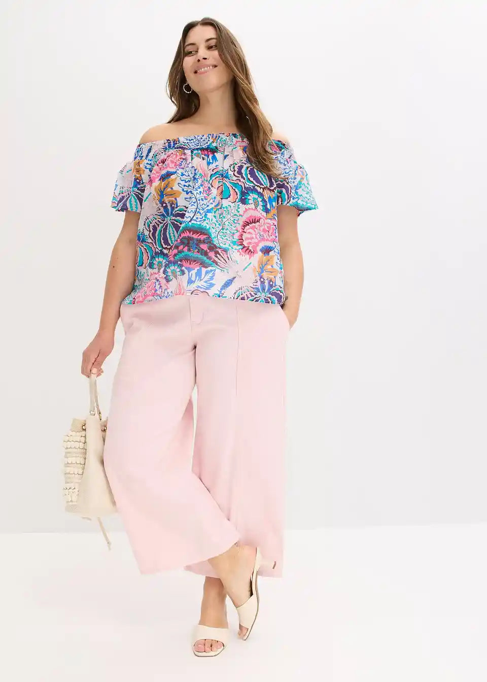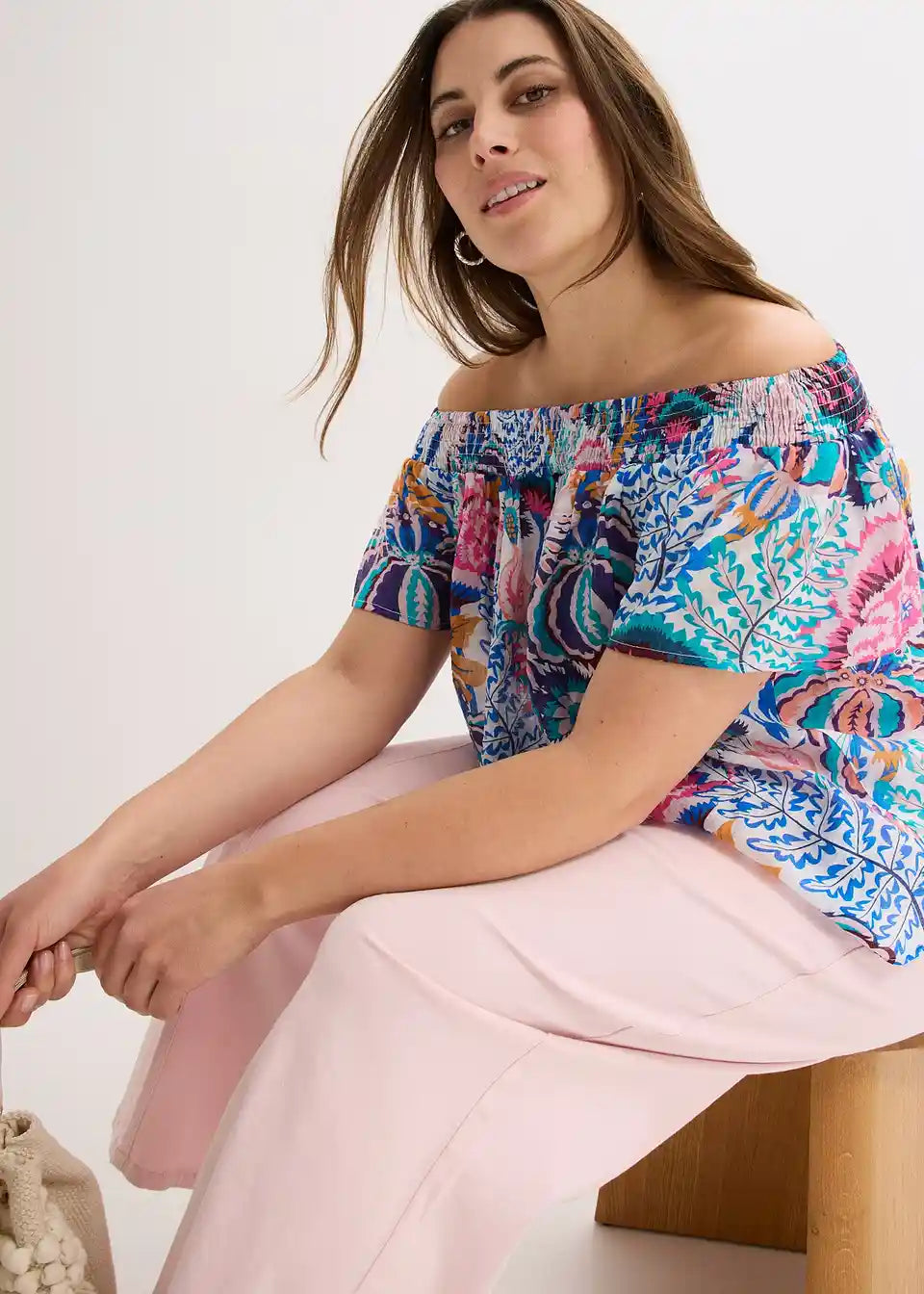 Bluza s carmen izrezom od laganog materijala s udjelom viskoze
