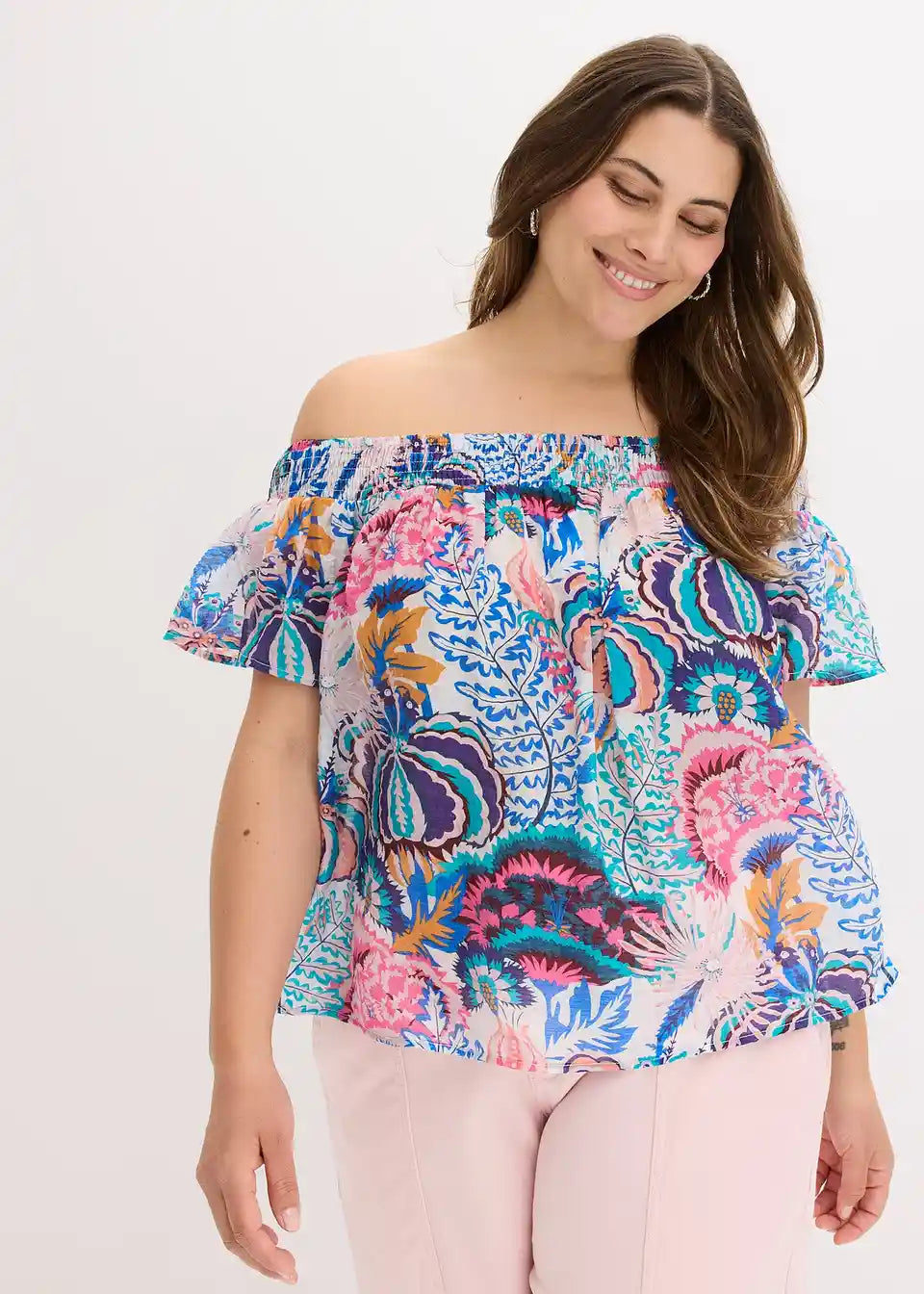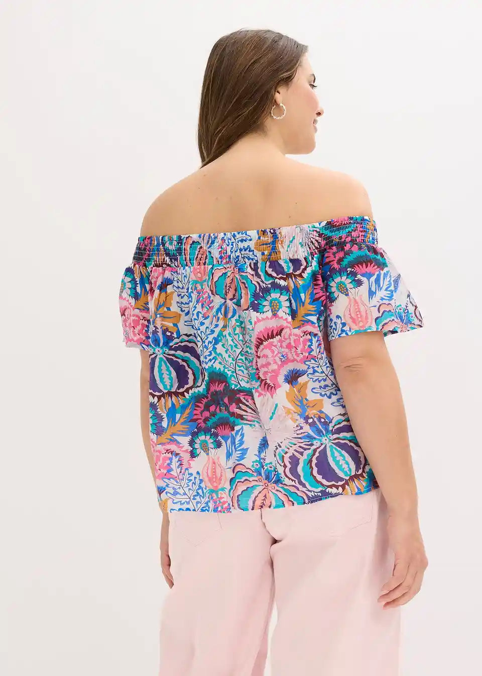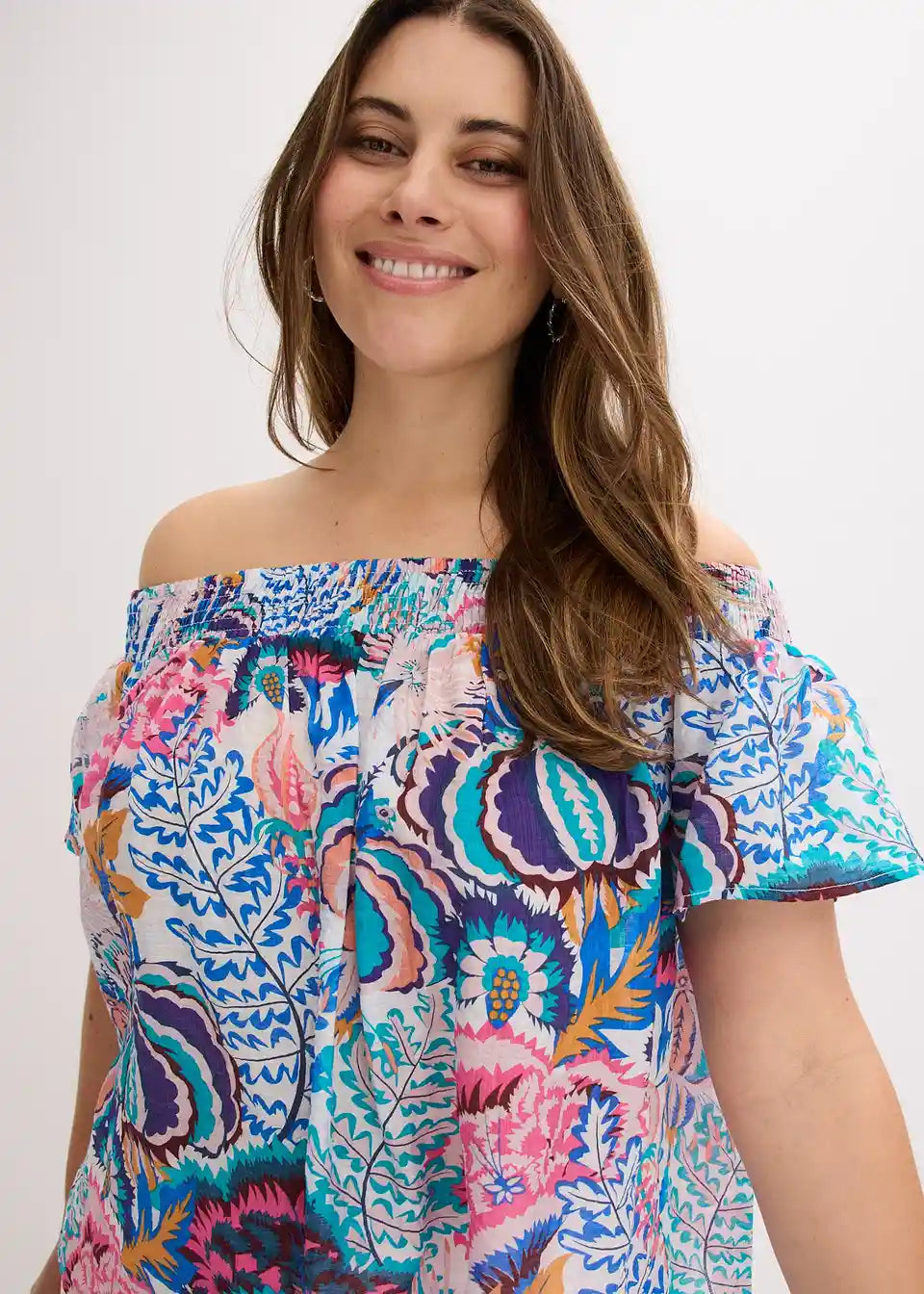 moderno tiskana Carmen-bluza od lagane mješavine viskoze, s detaljem od smoka na izrezu