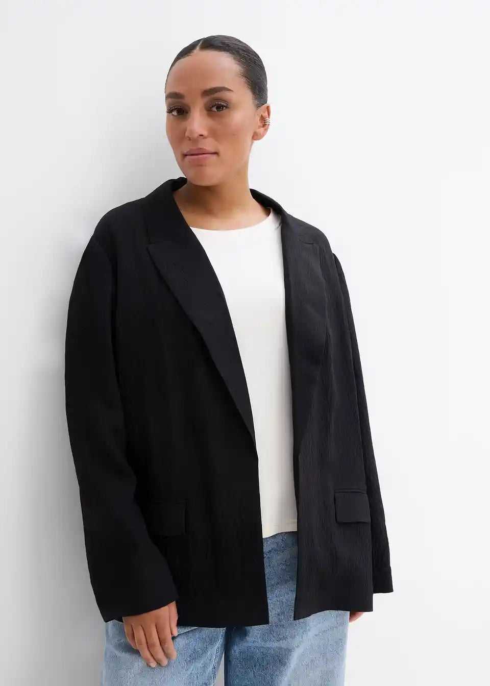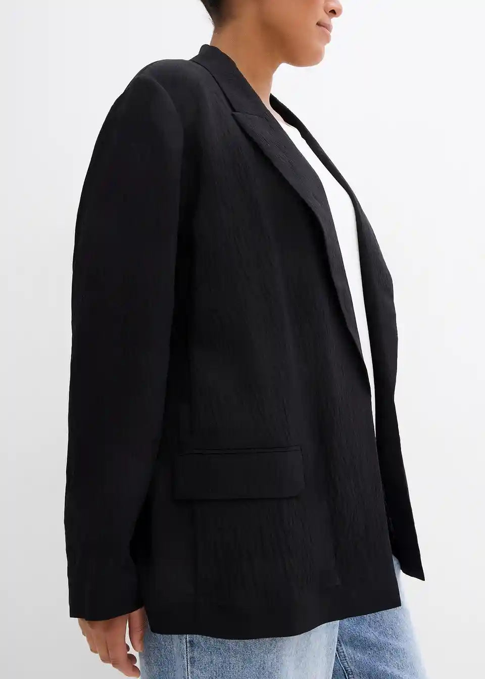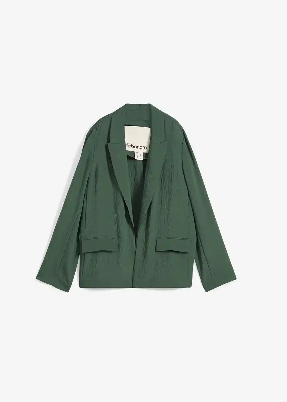 Blazer s rever ovratnikom i dugim rukavima, te prednjim džepovima s preklopom od strukturiranog crinkle materijala