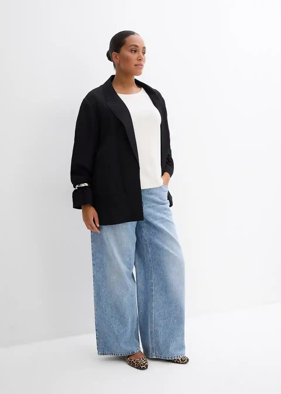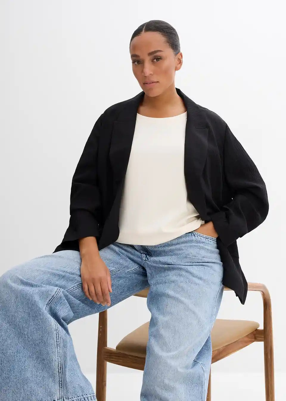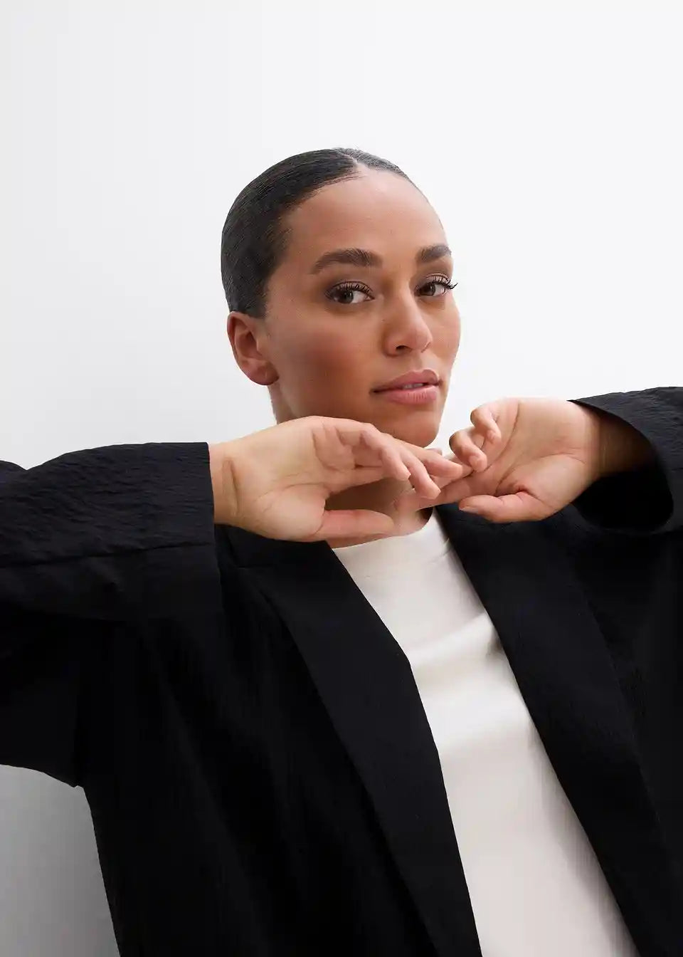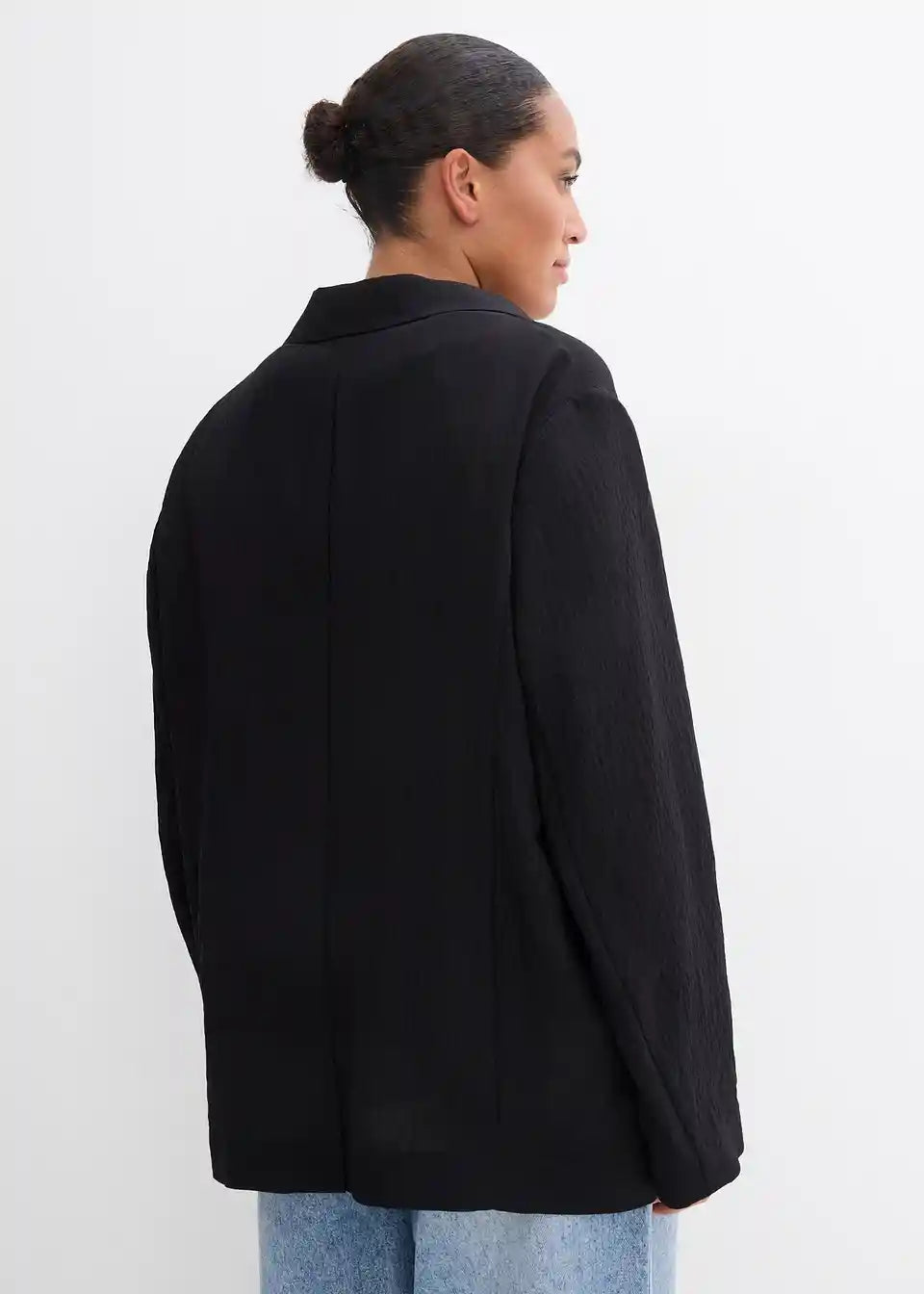 Blazer s rever ovratnikom i dugim rukavima, te prednjim džepovima s preklopom od strukturiranog crinkle materijala
