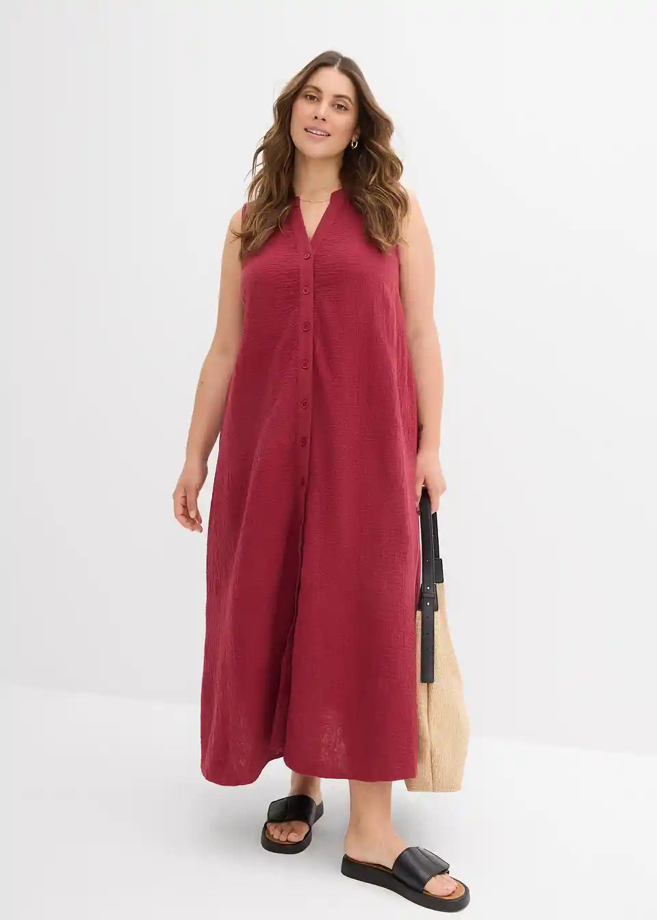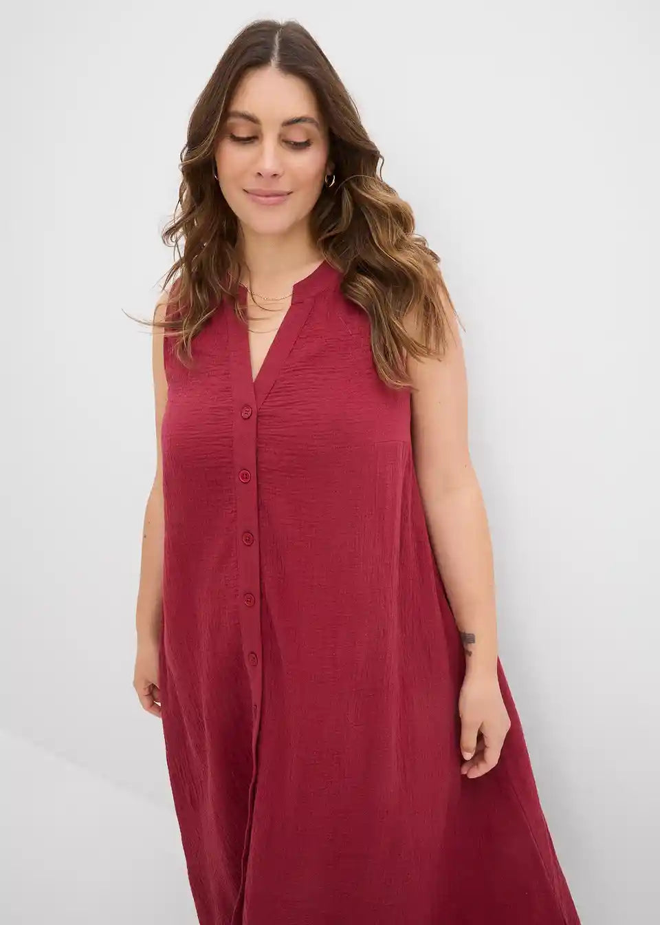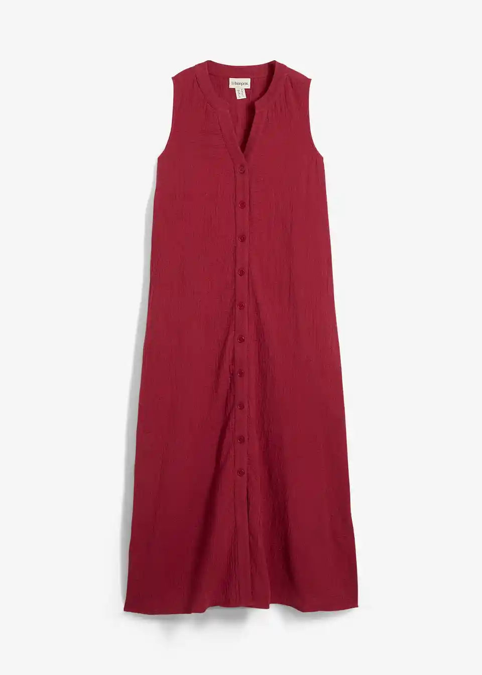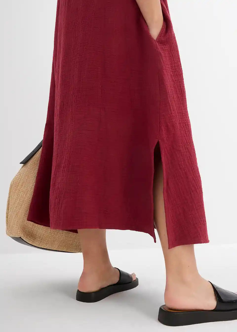 Duga bluz-haljina od čiste pamuka s oversize krojem. Sa bočnim džepovima u šavovima i prorezima sa strane.