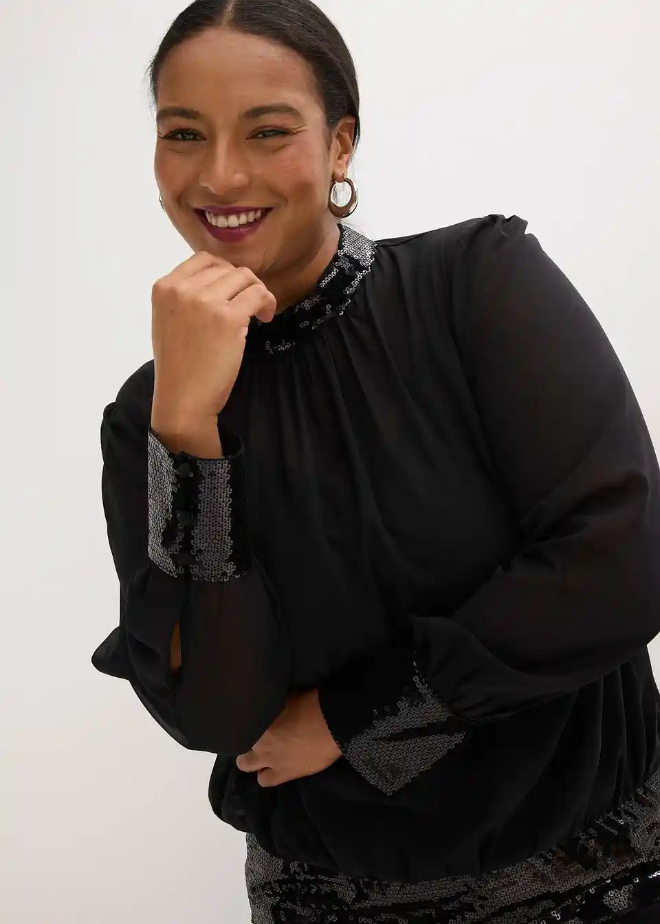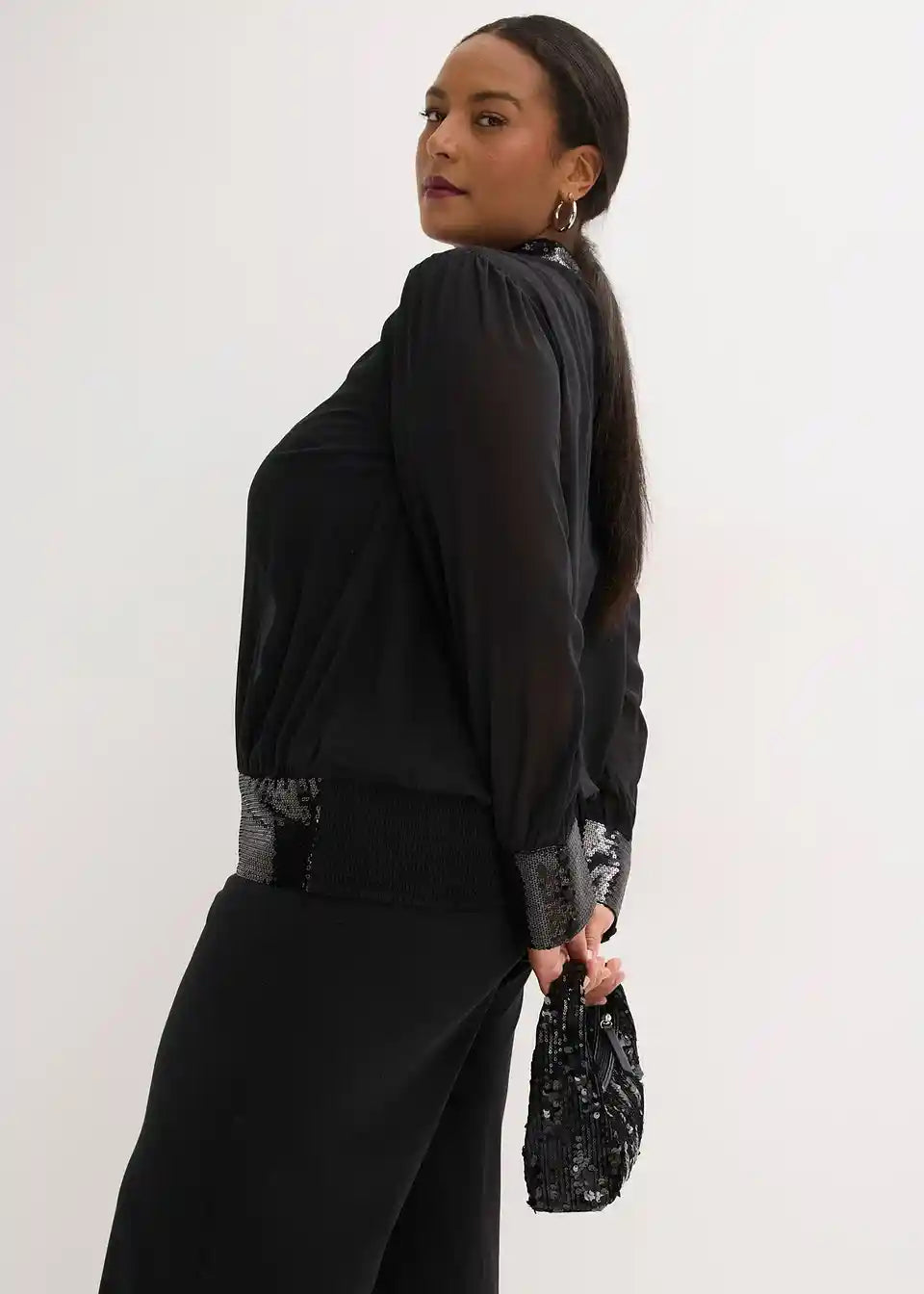 Moderna i ženstvena: bluza od finog šifona s podstavom i umetkom sa šljokicama