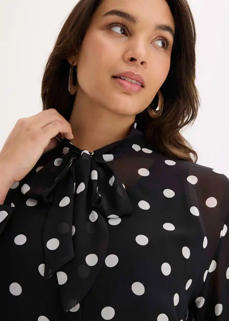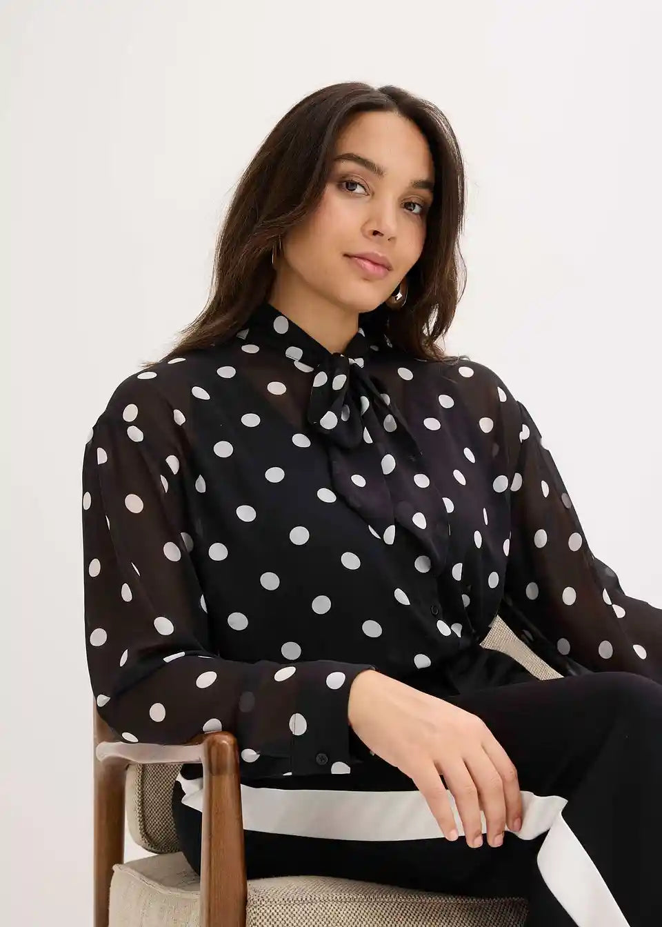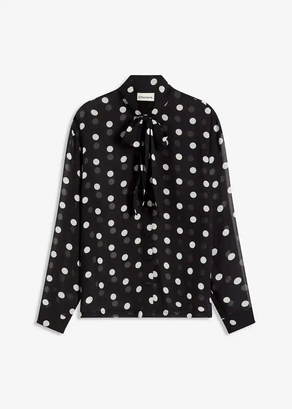 ženstvena bluza od šifona s ovratnikom na mašnu i modernim printom