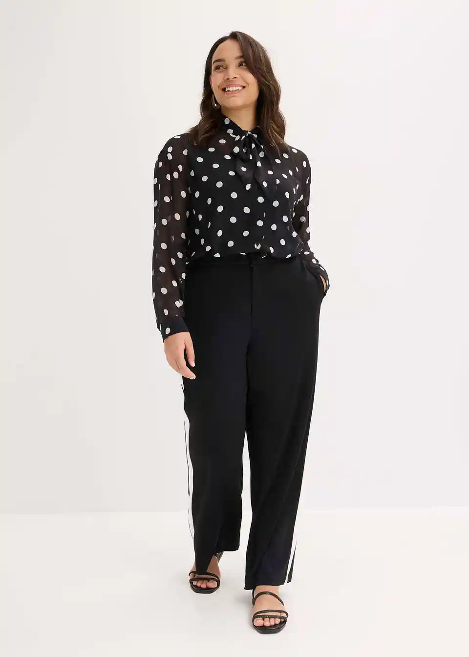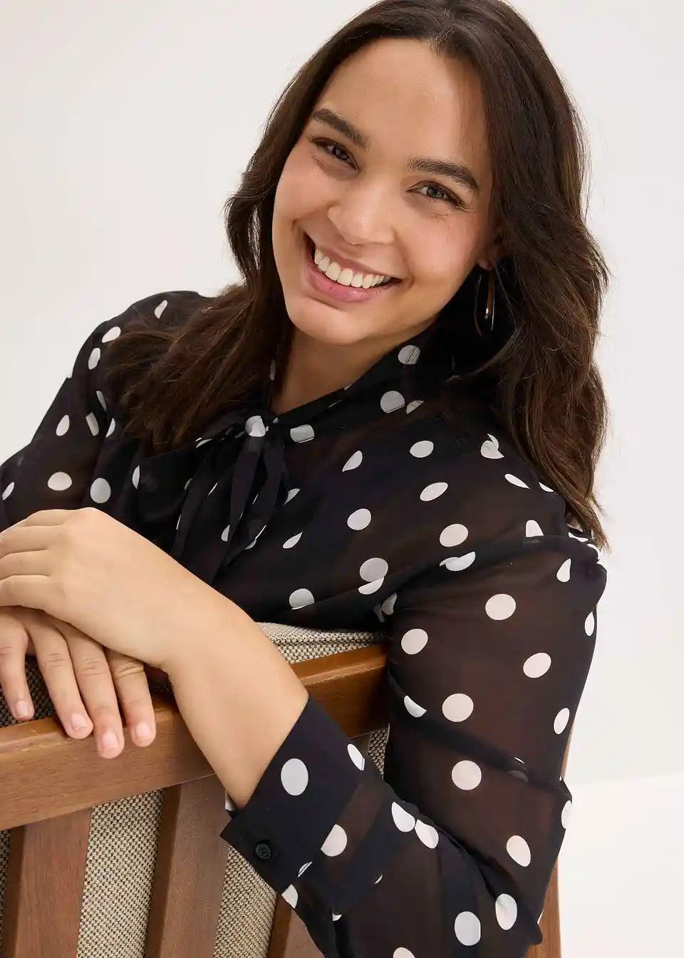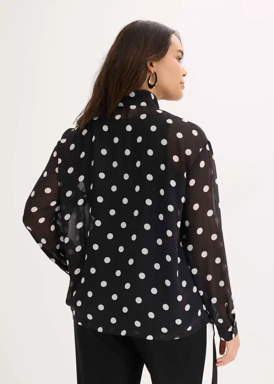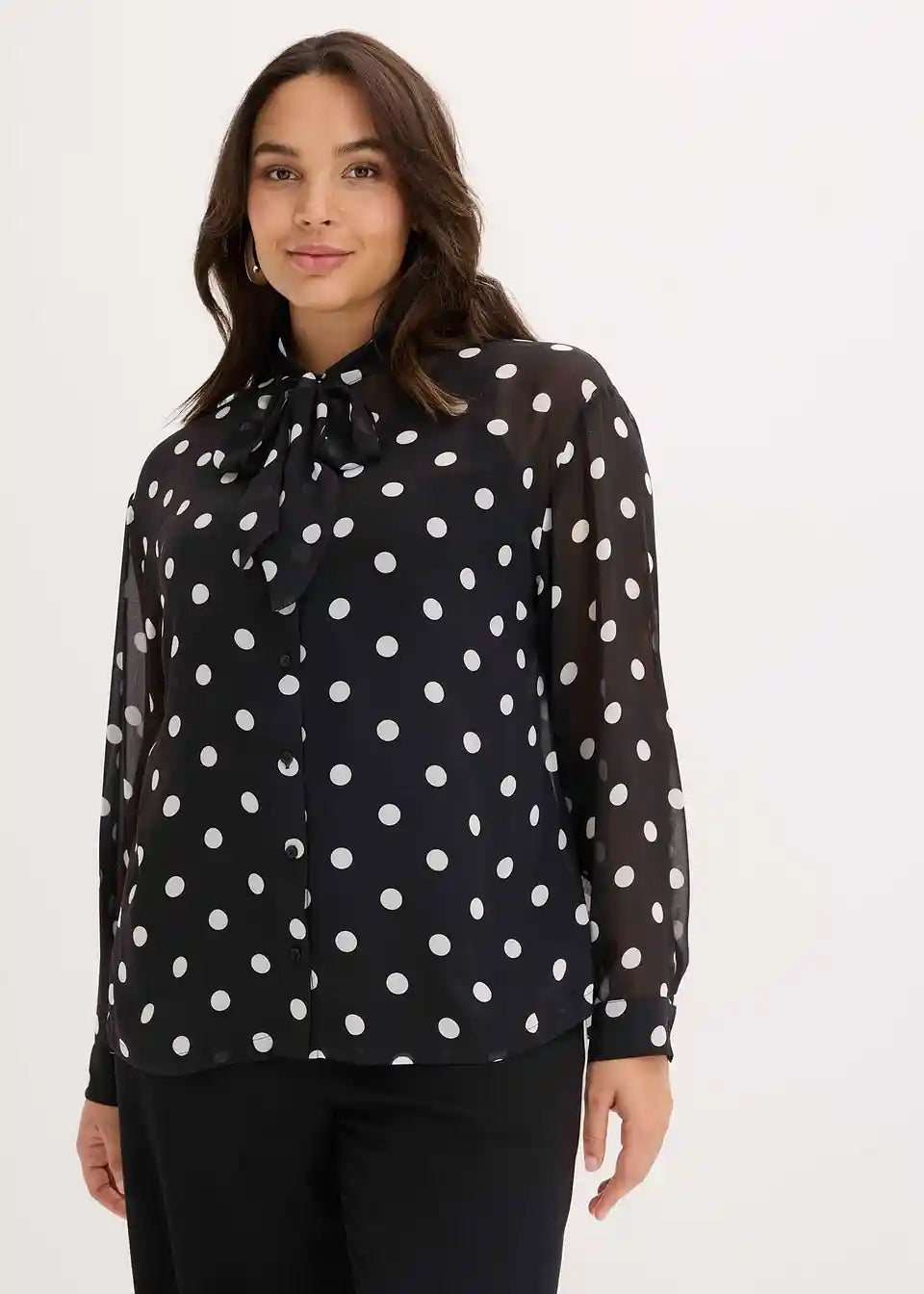 ženstvena bluza od šifona s ovratnikom na mašnu i modernim printom