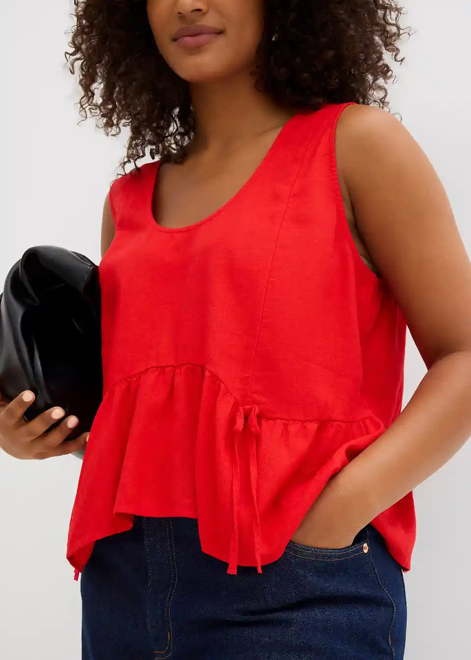 Moderan bluzni top s mašnama i volanima od prozračne mješavine lana