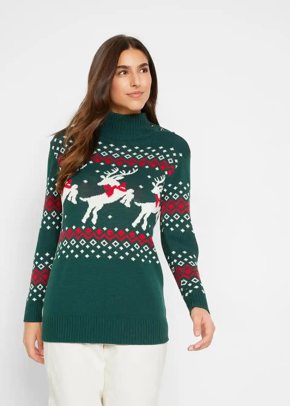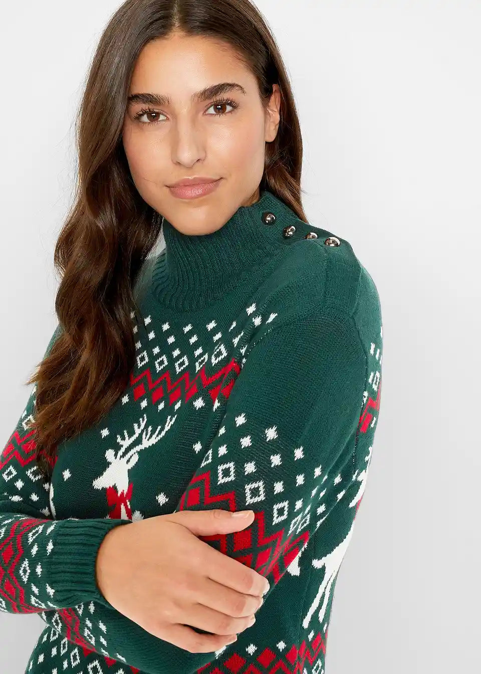 Moderan božićni pulover s detaljima na gumbima