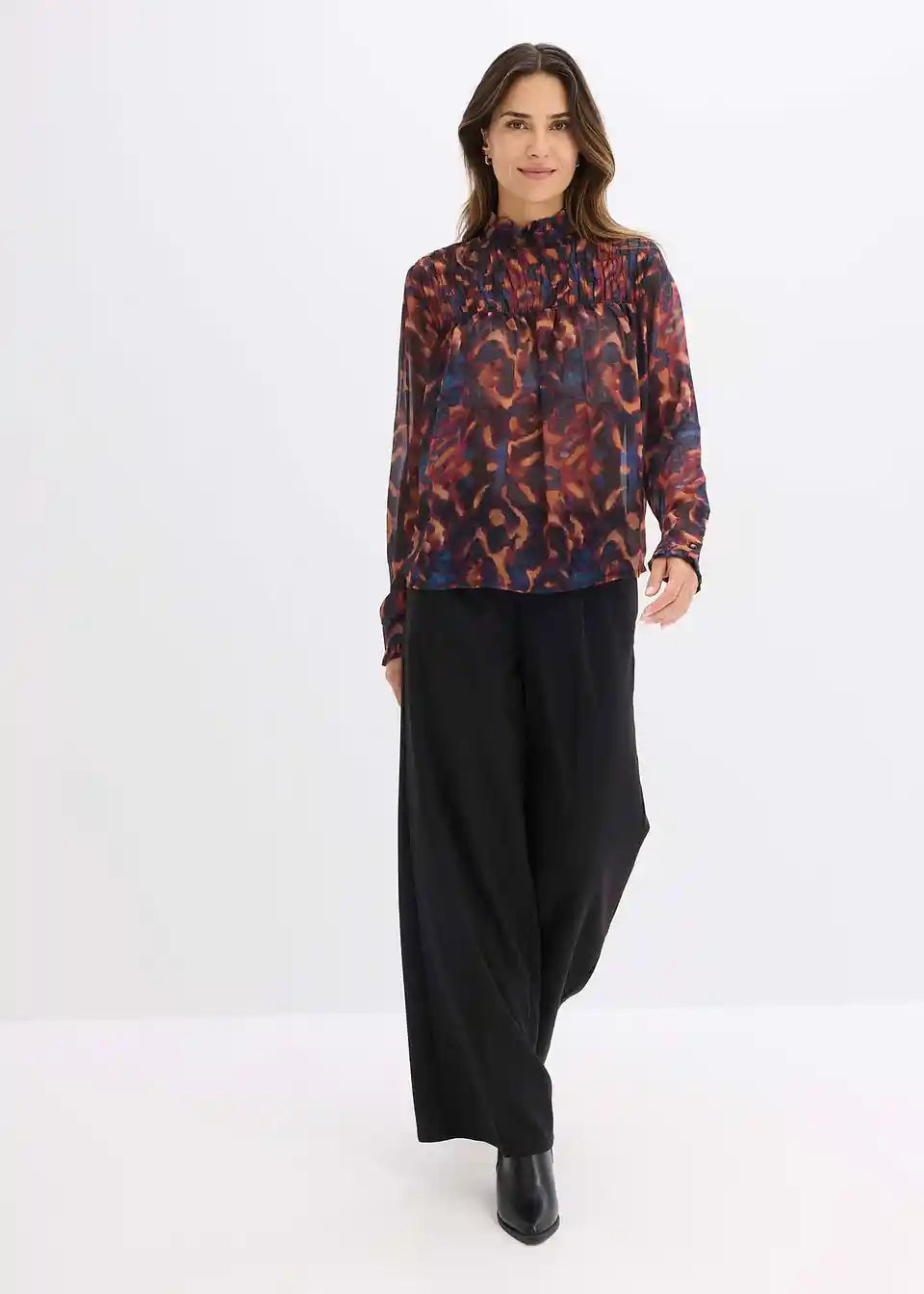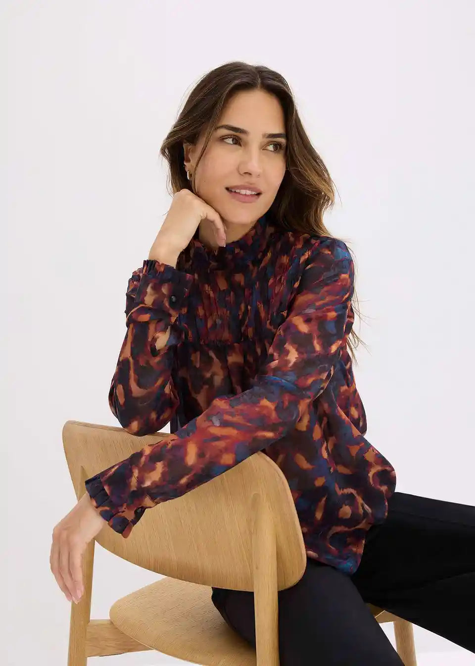 moderna Chiffon bluza s tiskom i smok detaljem sprijeda