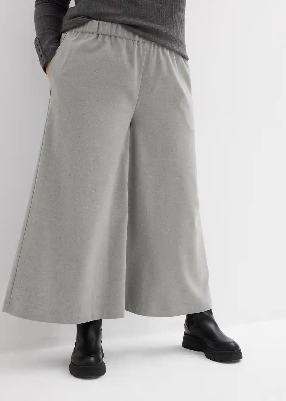 Culotte 7/8 dužine s visokim, elastičnim pojasom. Široki kroj.