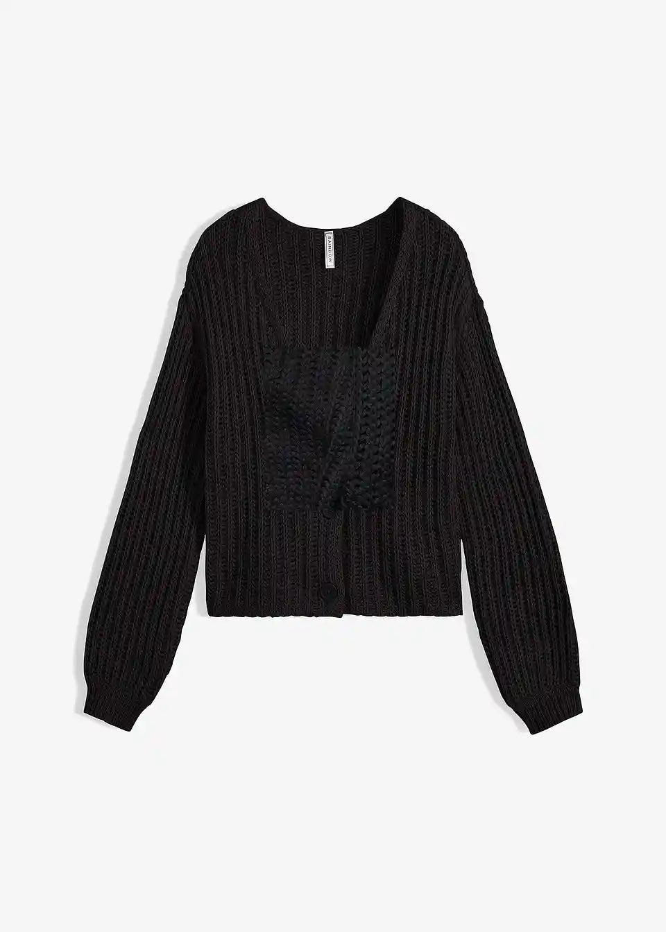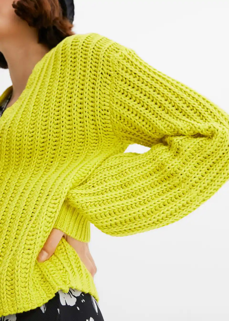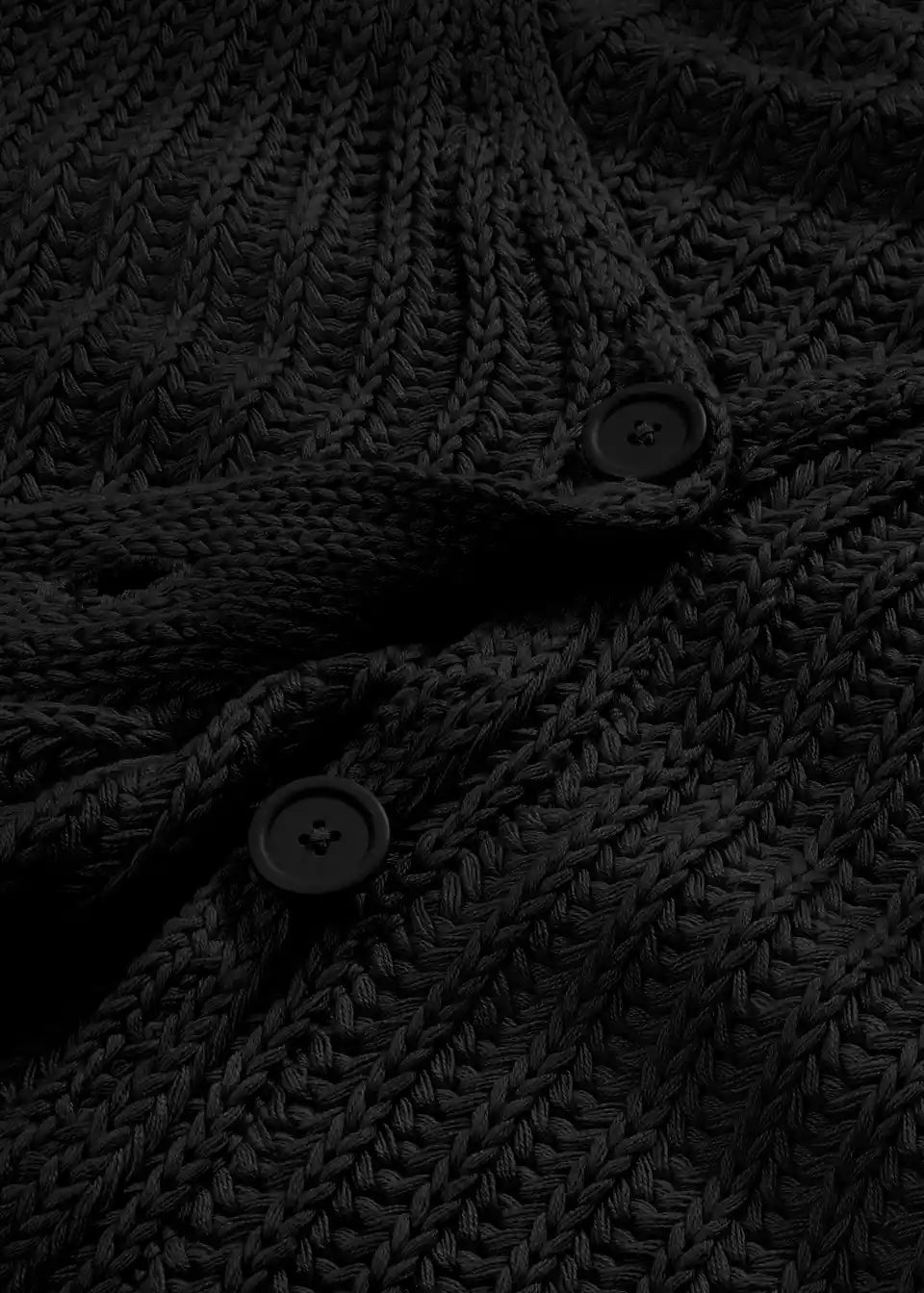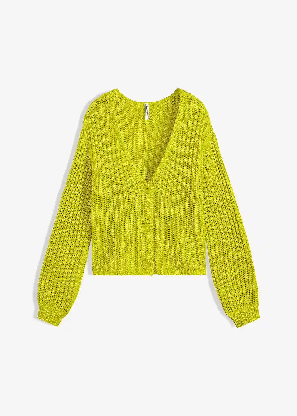 Debeli pleteni kardigan s voluminoznim rukavima i spuštenim ramenima