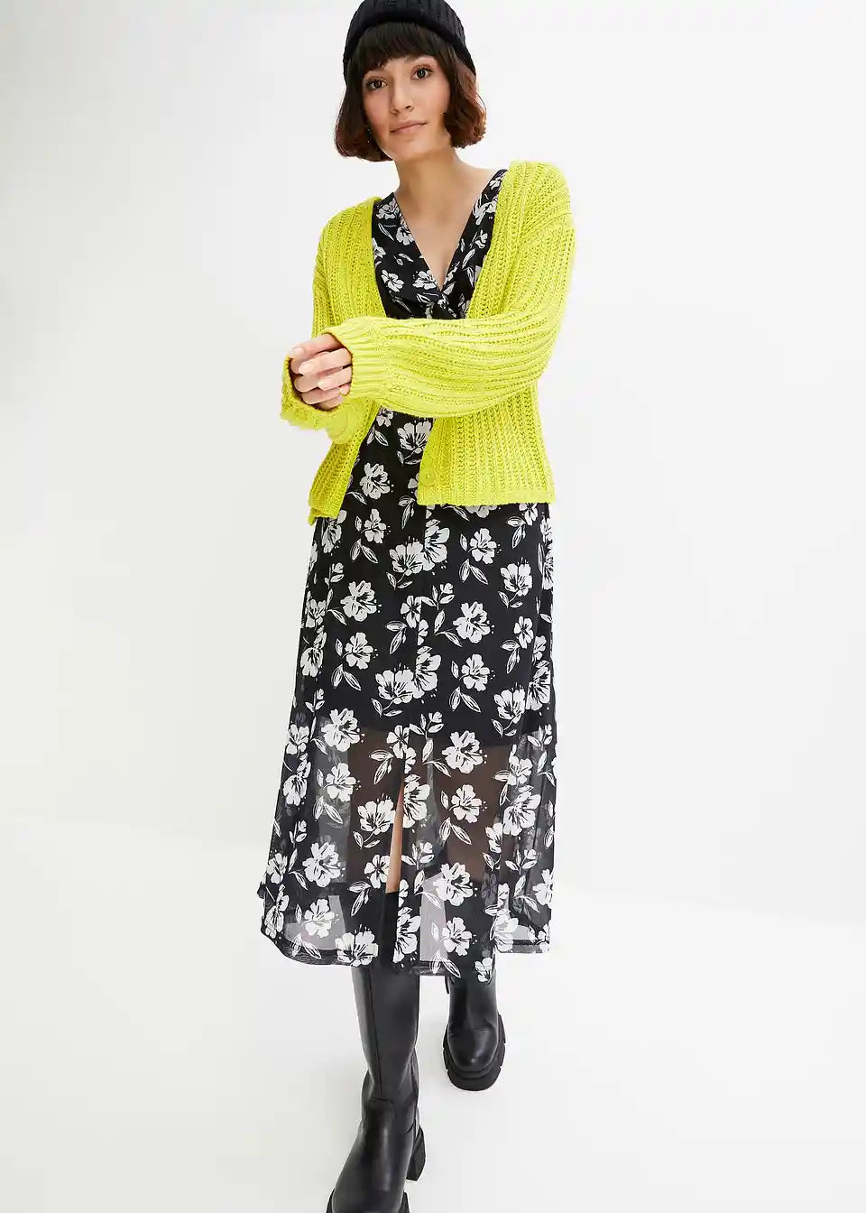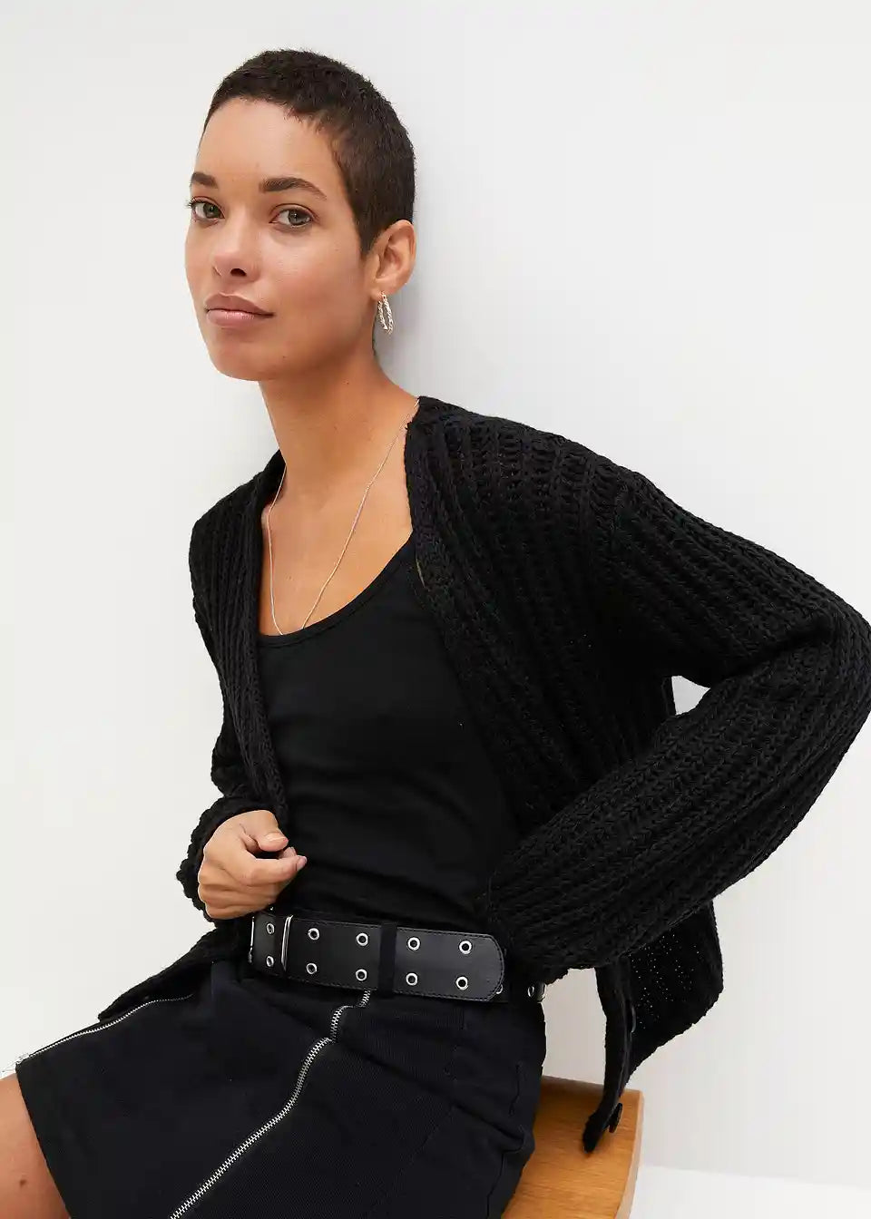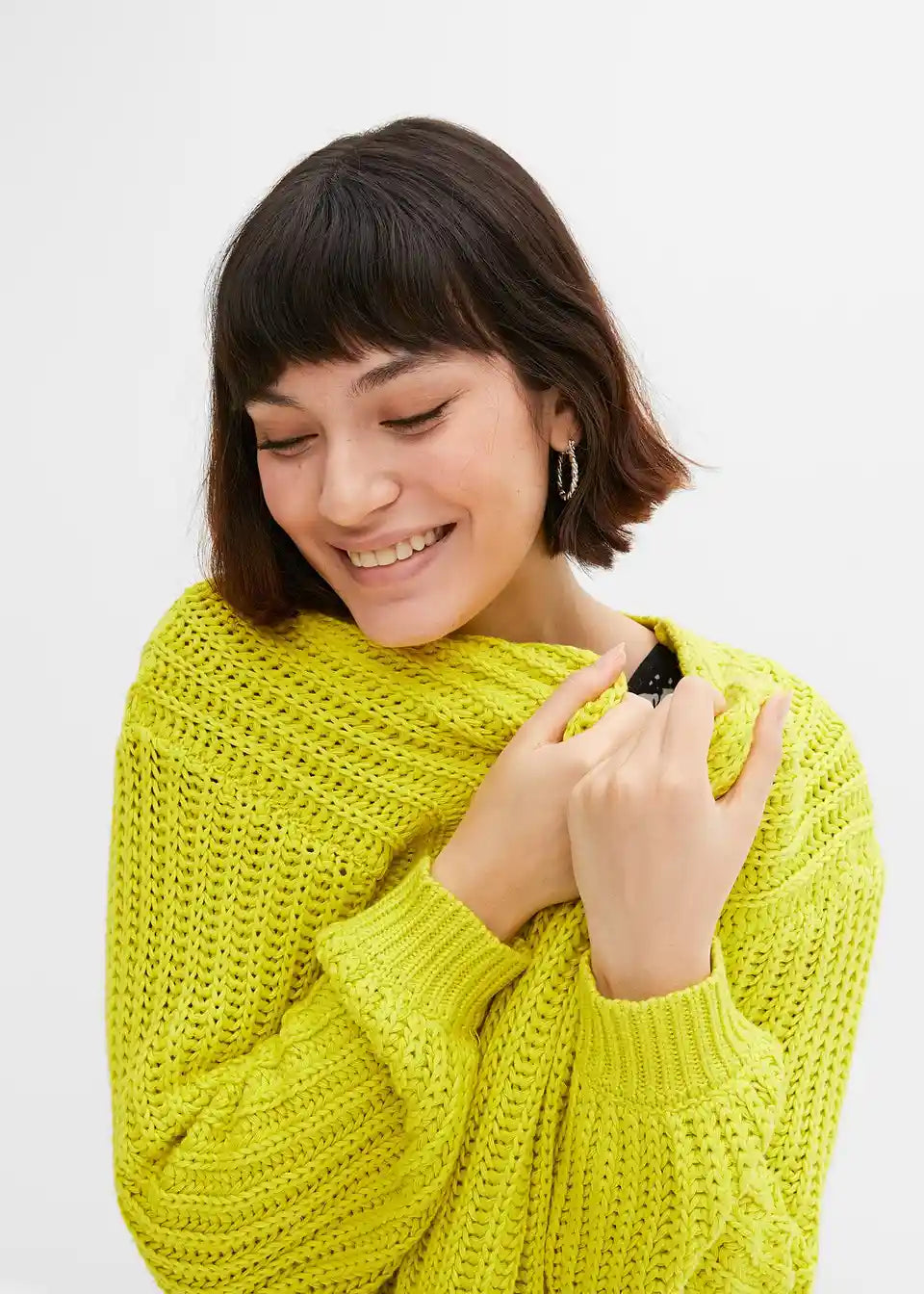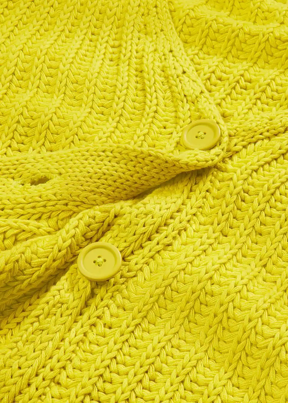 Debeli pleteni kardigan s voluminoznim rukavima i spuštenim ramenima