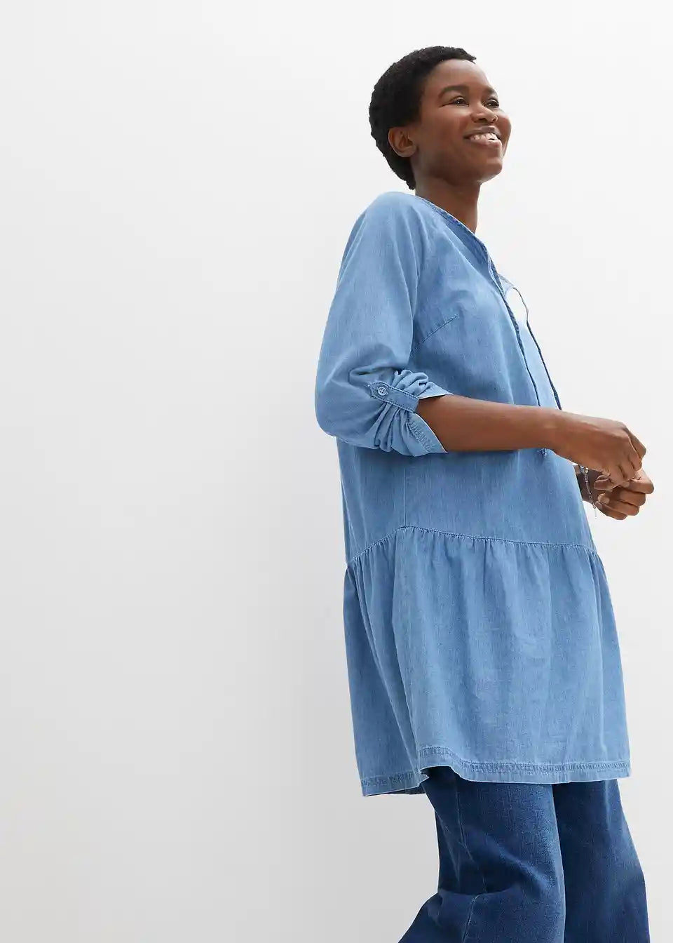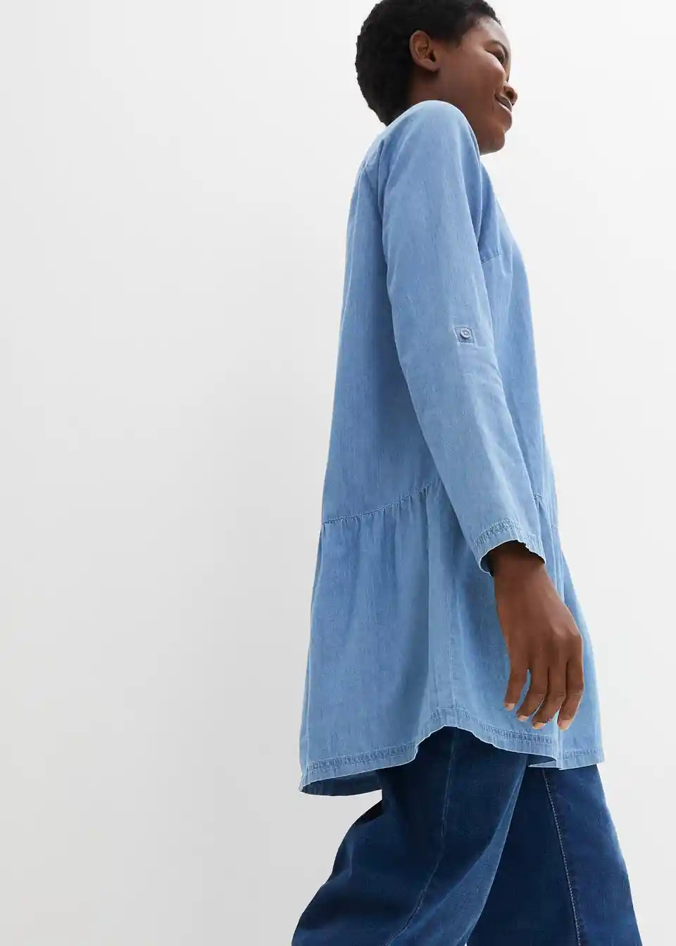 Udobno krojena denim-tunika s preslatkim detaljem na izrezu