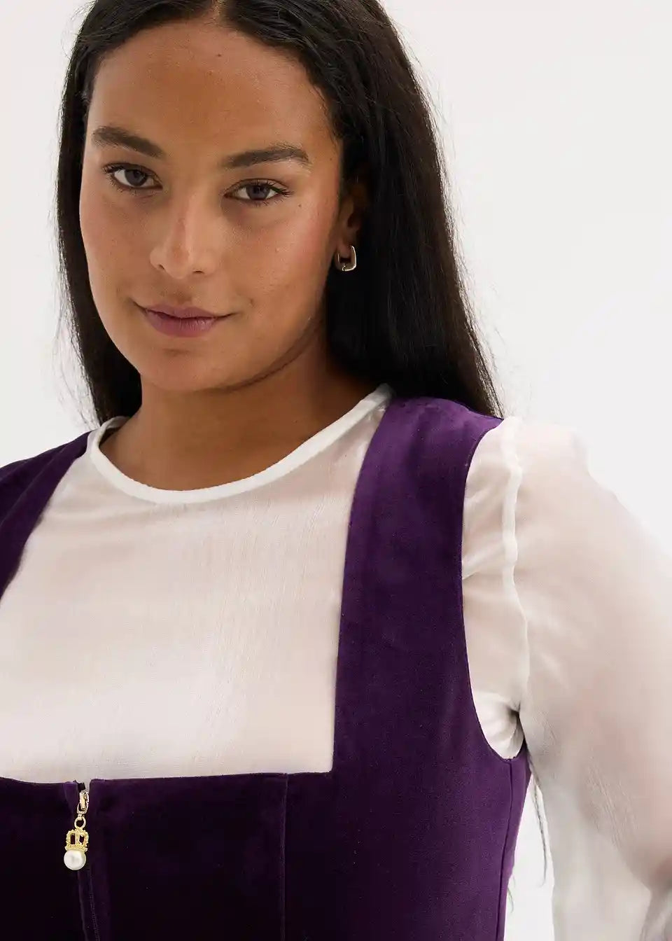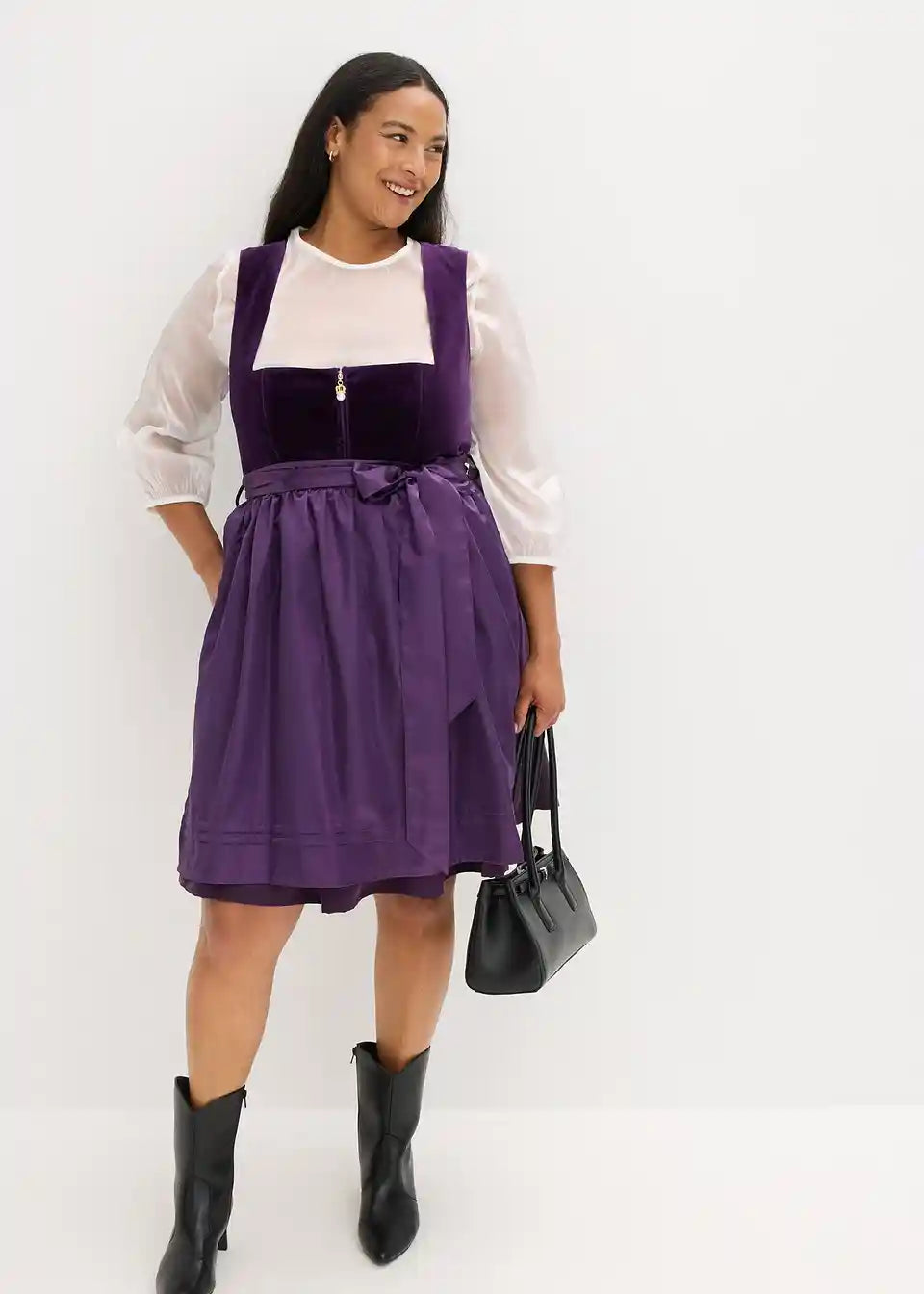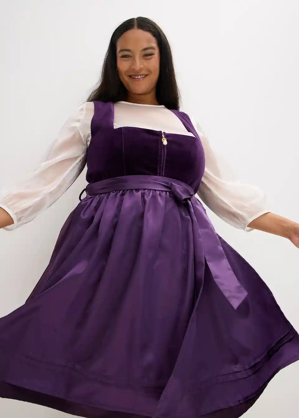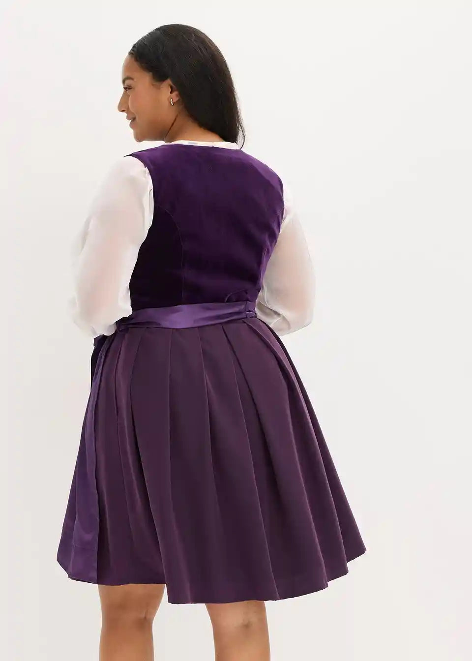 Tradicionalni dirndl s visokokvalitetnim baršunastim prslukom i suknjom koja mijenja nijanse. Suknja ima ugodnu podstavu od pamuka.
