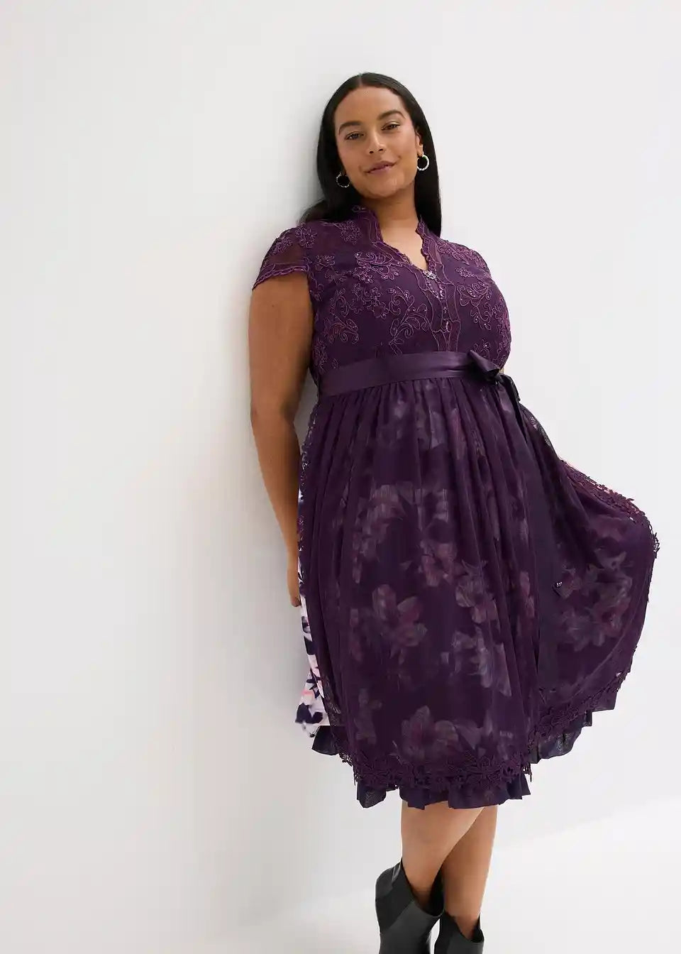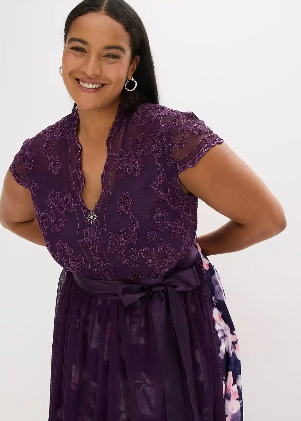 Vrhunski Dirndl s cvjetnim printom, ukrašen čipkom, perlicama i šljokicama