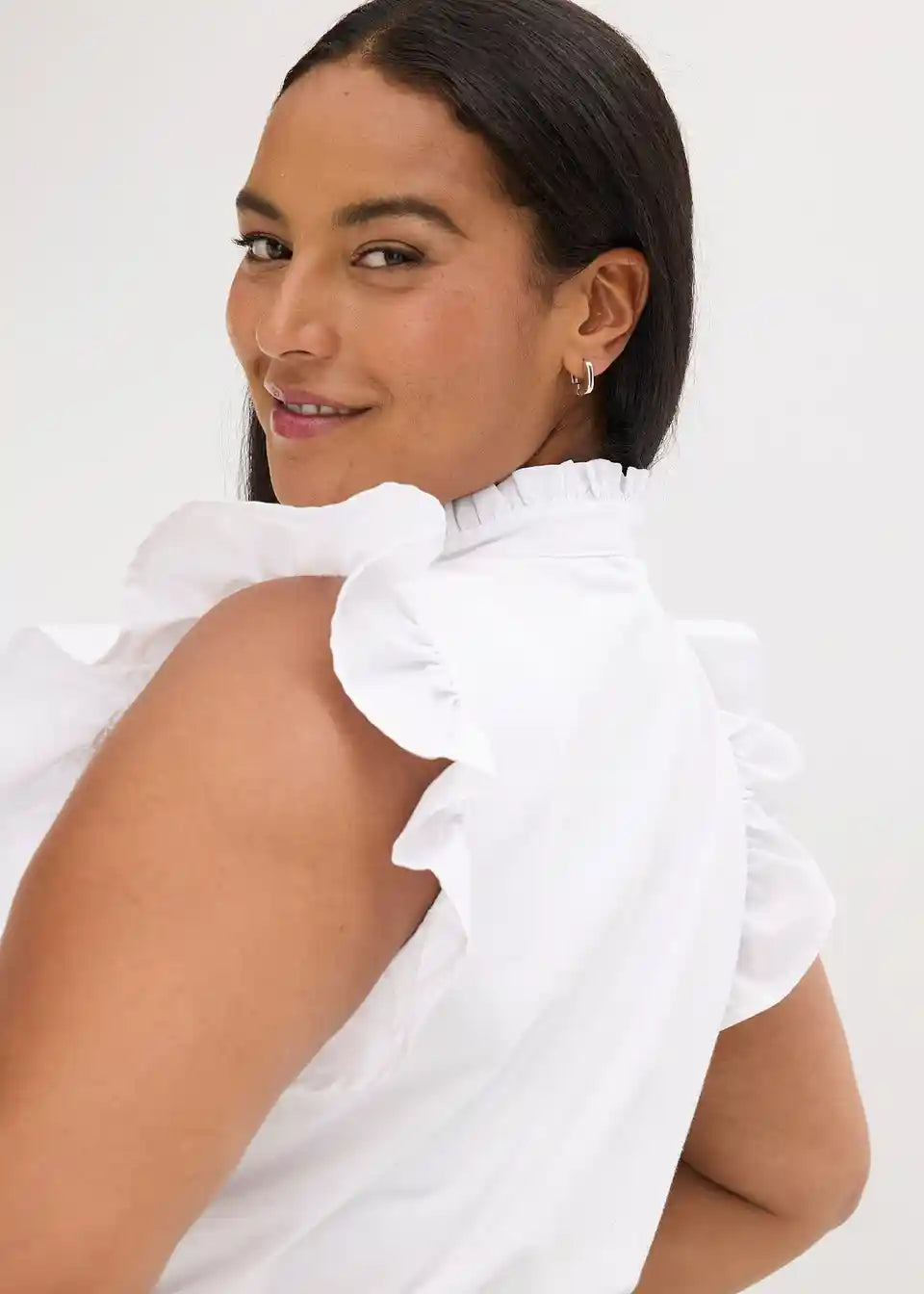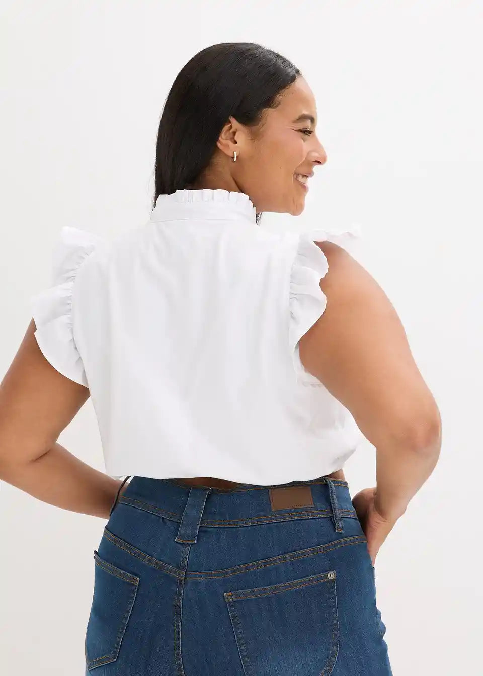 Moderna i ženstvena: Dirndlbluse s volanima i stojećim ovratnikom s detaljem za vezanje