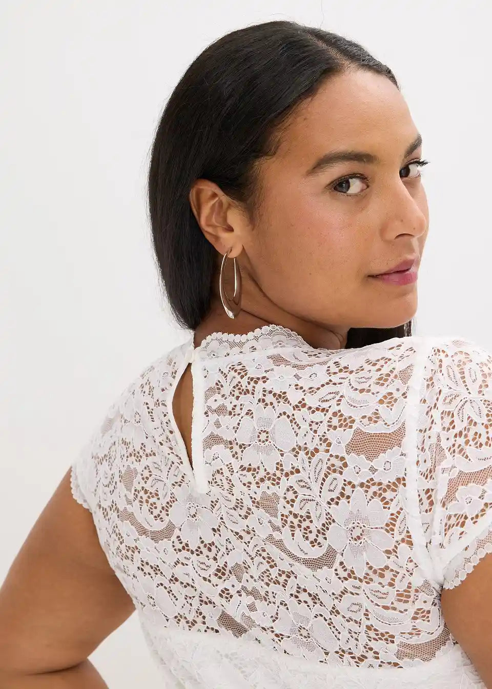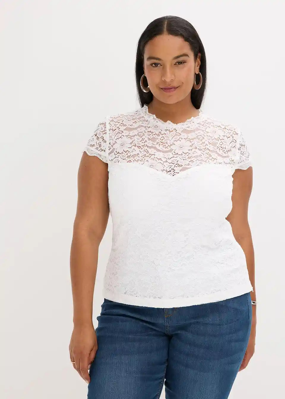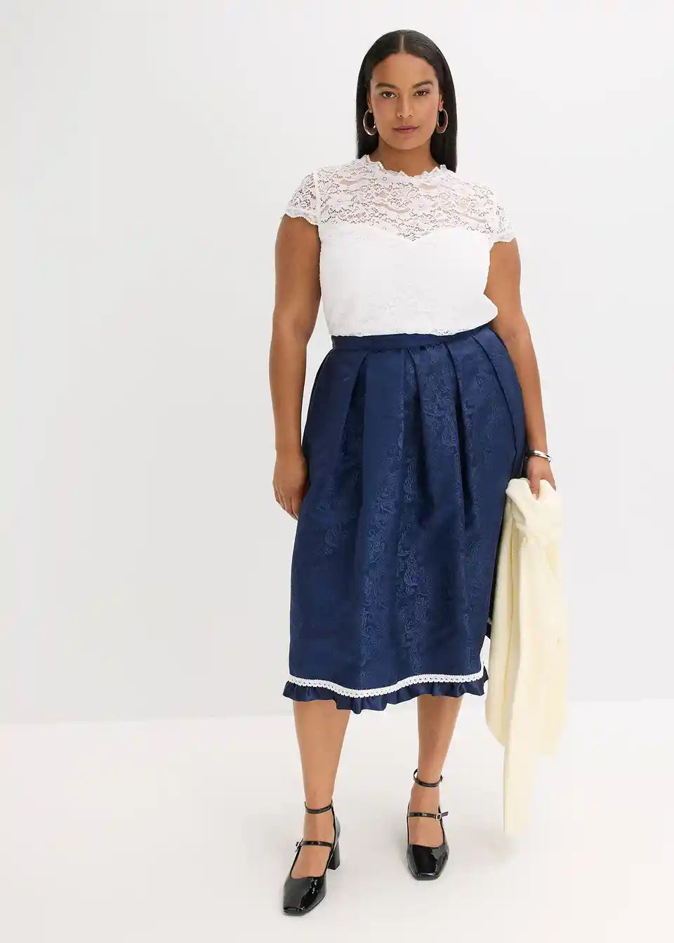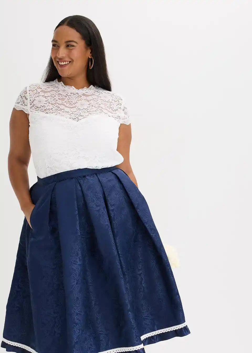 Romantična i ženstvena: Dirndlbluse od čipke s mini rukavima i malim stojećim ovratnikom od čipke