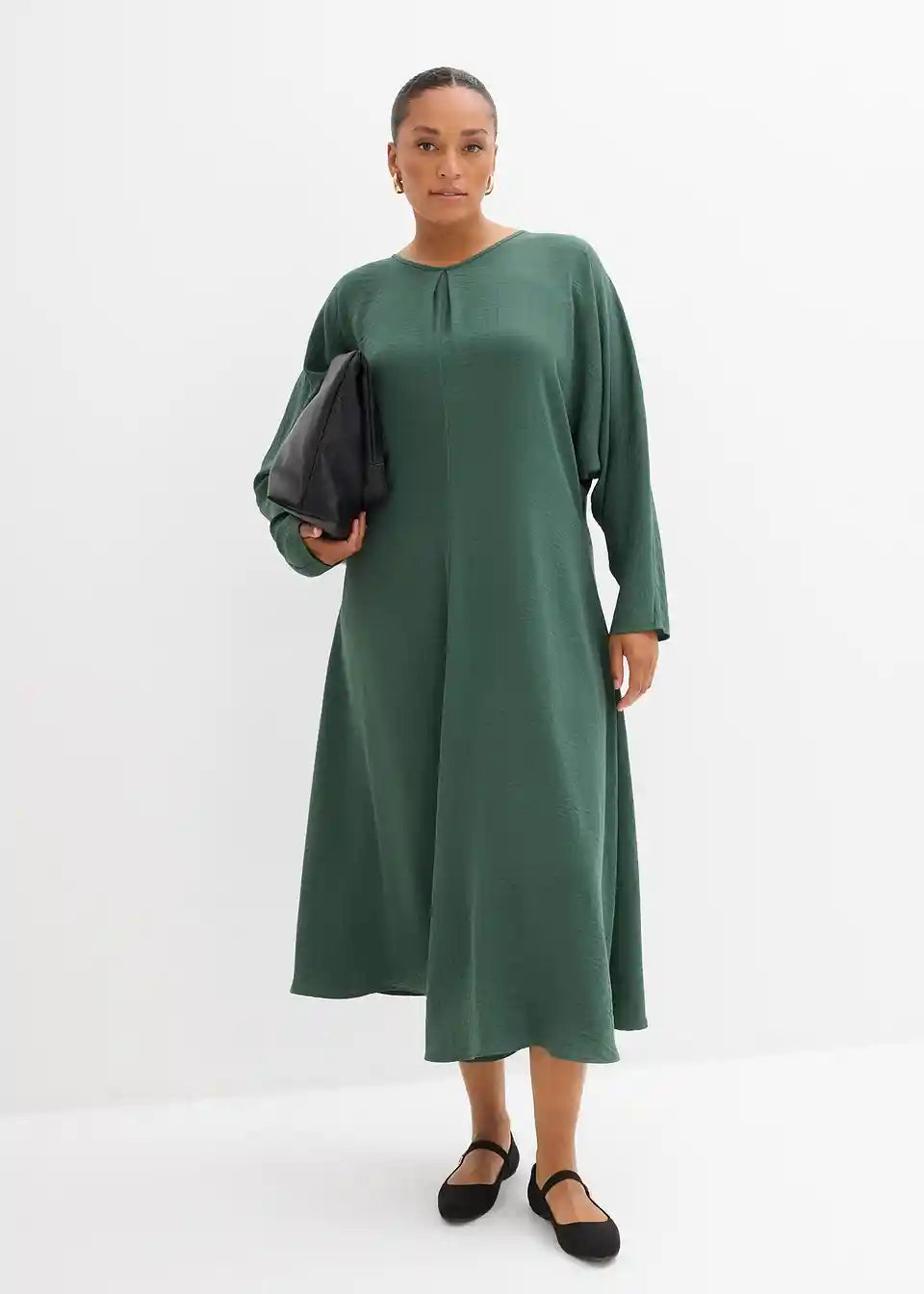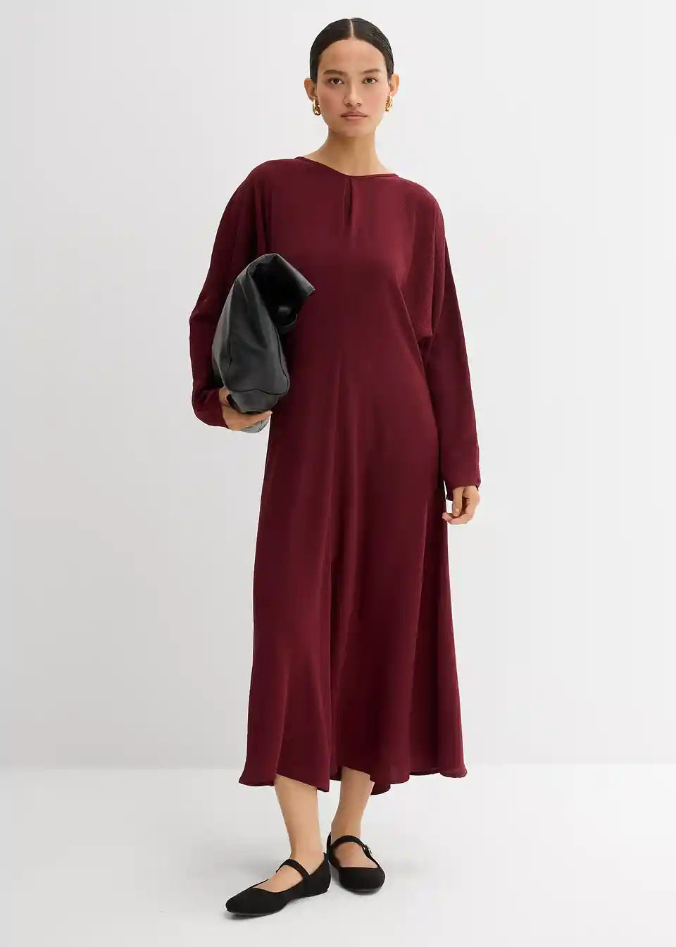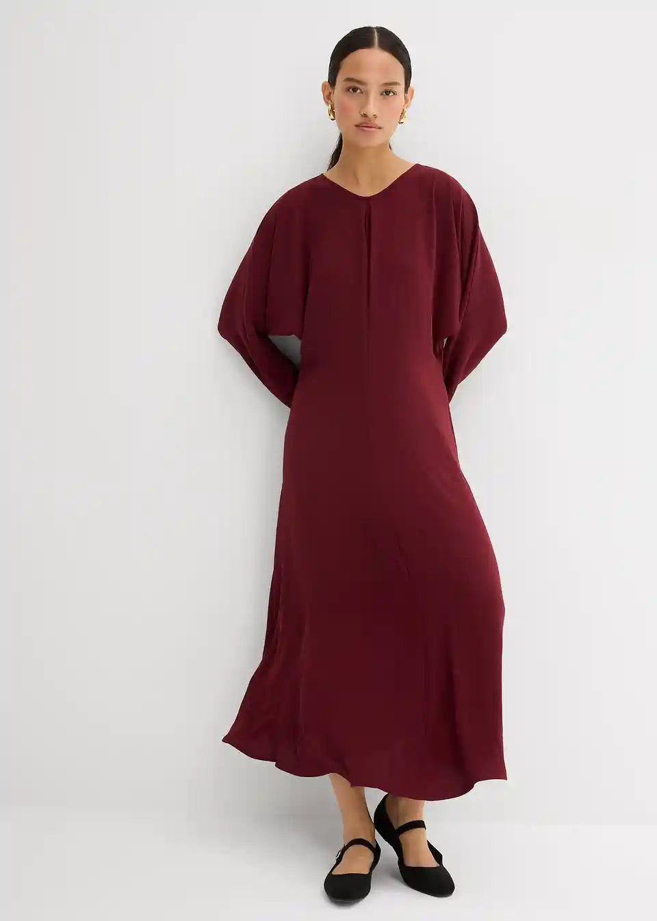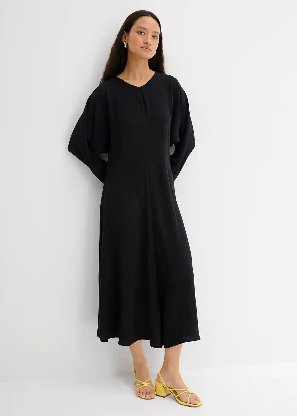 Drapirana haljina s voluminoznom suknjom i patentnim zatvaračem straga