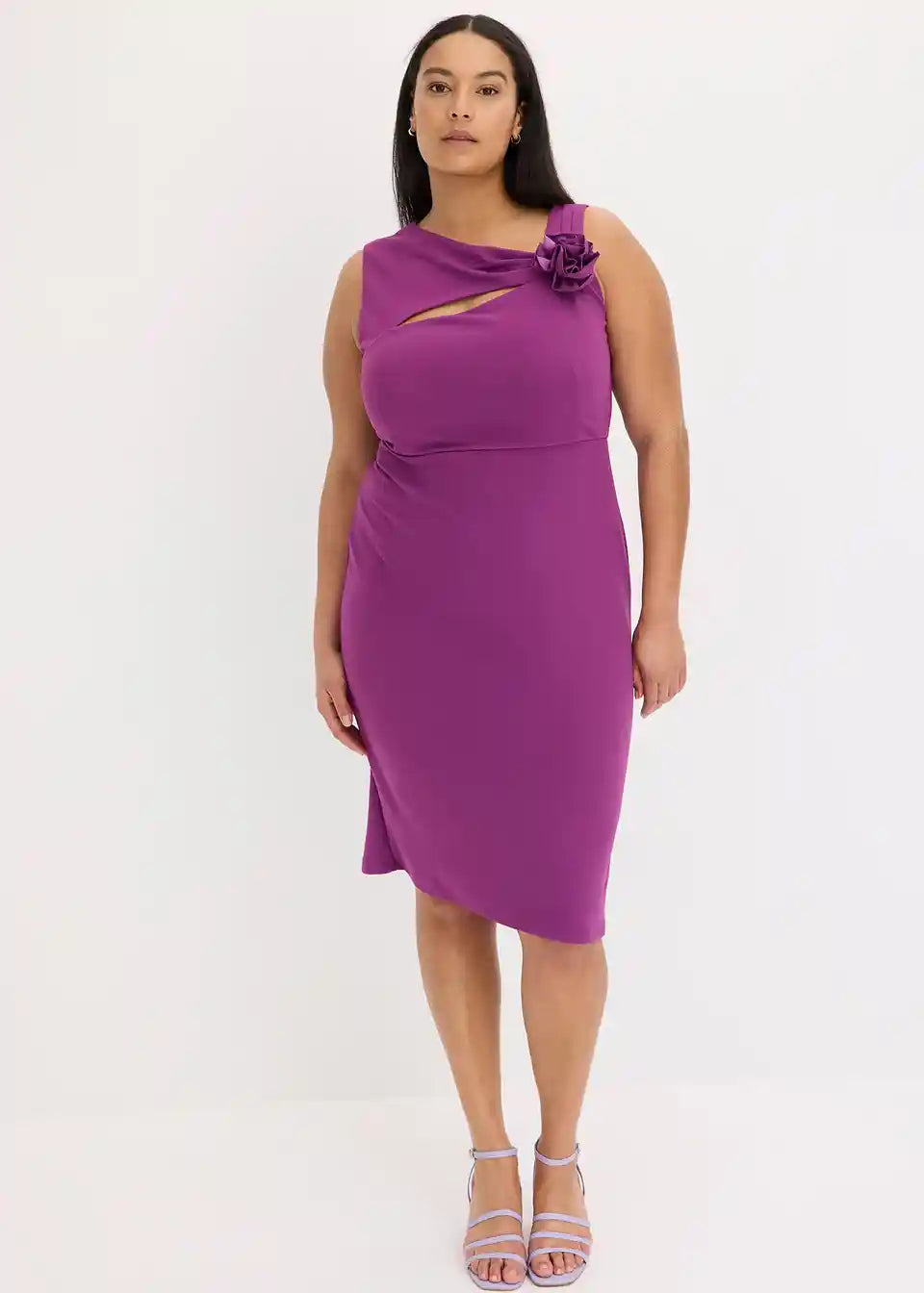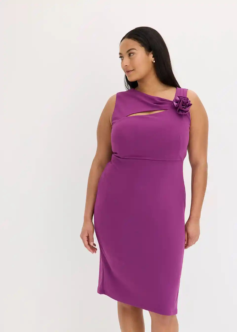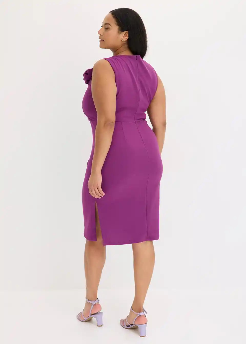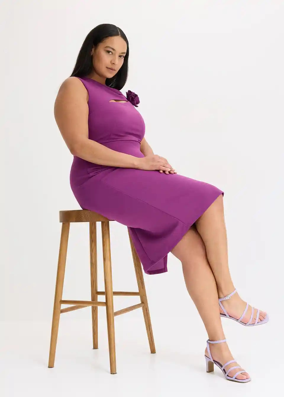 Moderna i ženstvena: Etui-haljina mini duljine od čvrstog scuba materijala s izrezom i cvjetnom aplikacijom