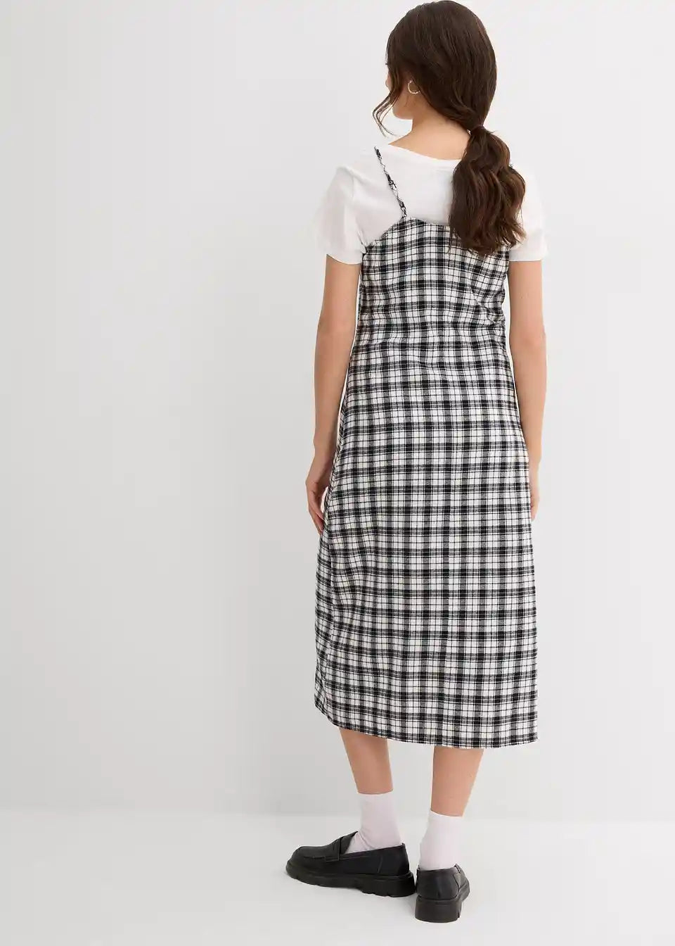Trendovska haljina na naramenice od flanela i s podesivim špageti naramenicama