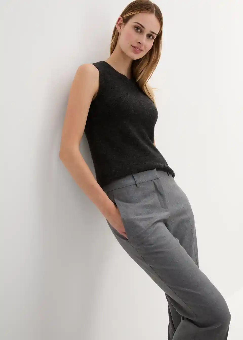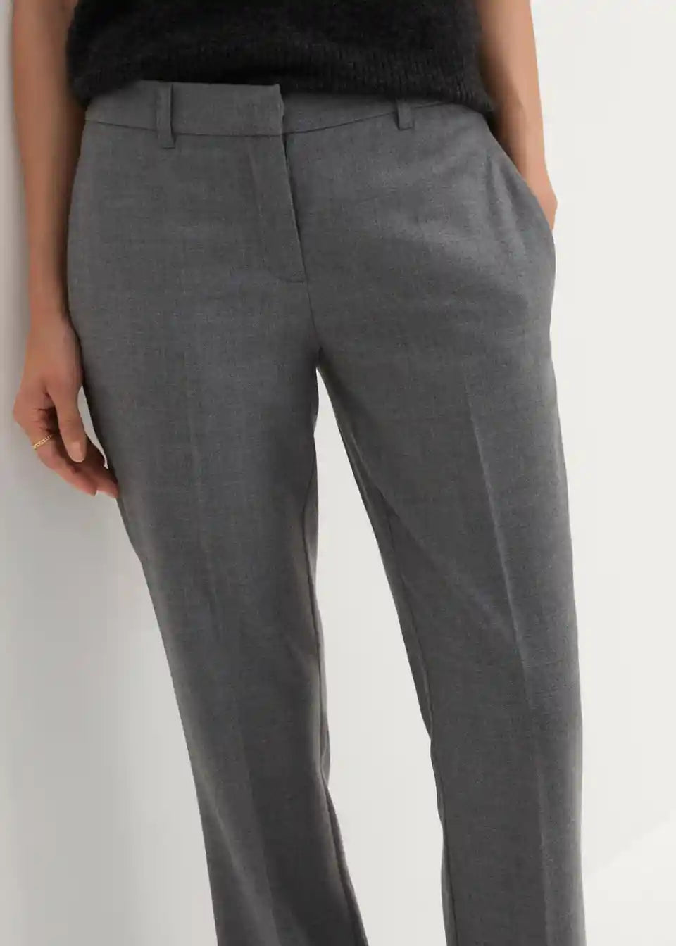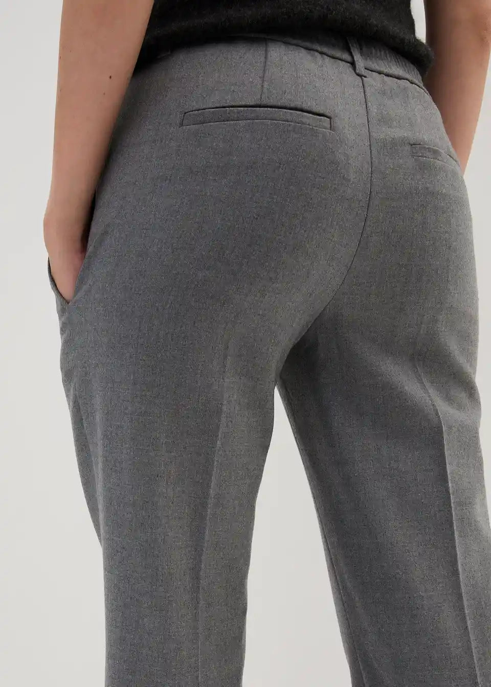Elegantne hlače s laganim širenjem izrađene od visokokvalitetne mješavine vune, s bočnim džepovima