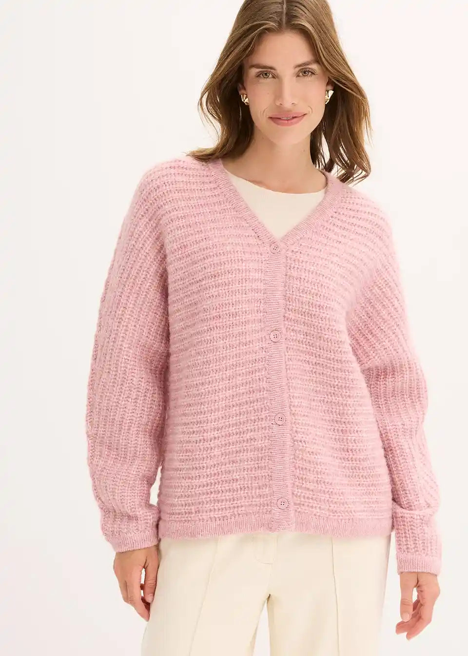 Meki kardigan s rukavima šišmiša i redom gumba