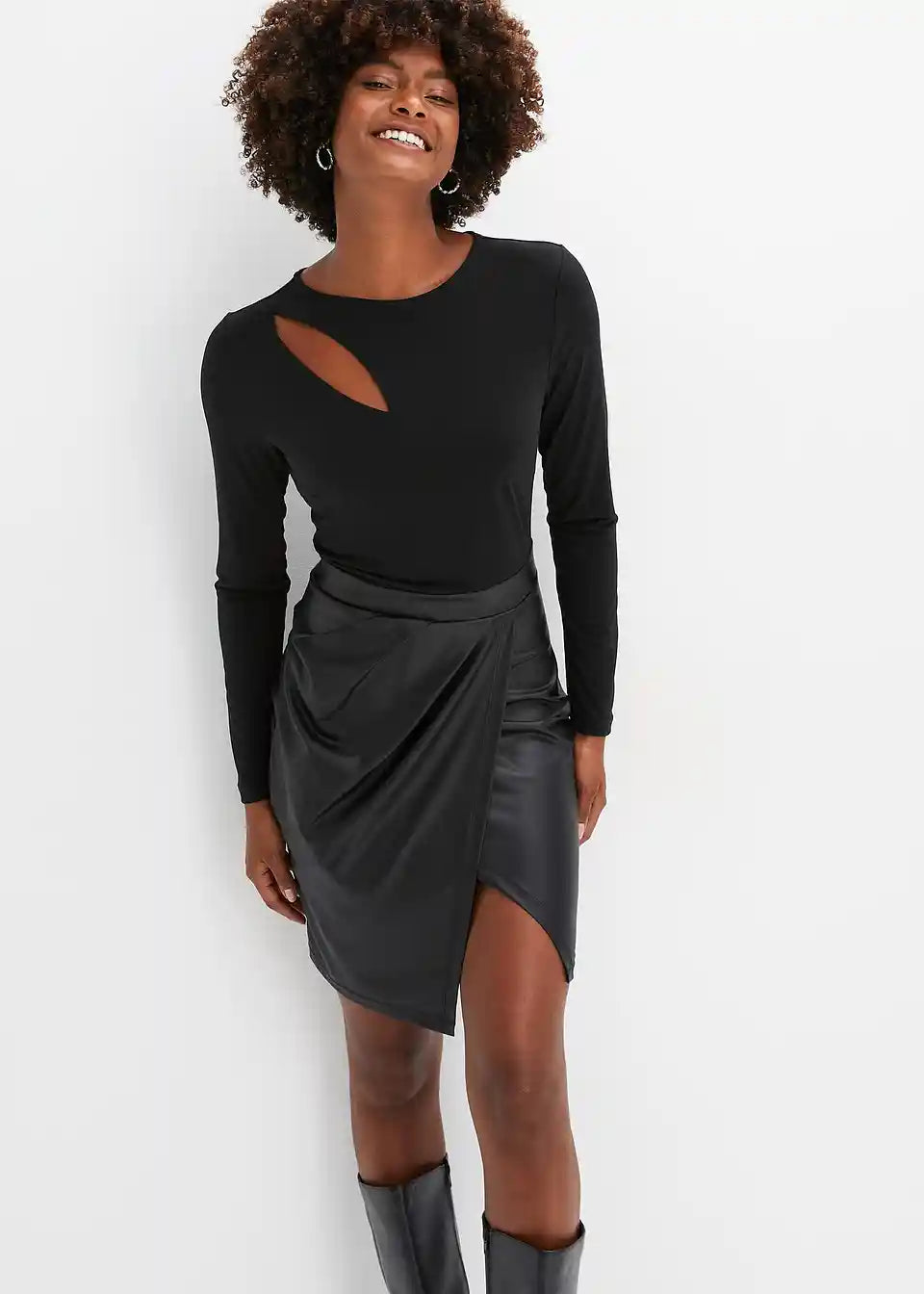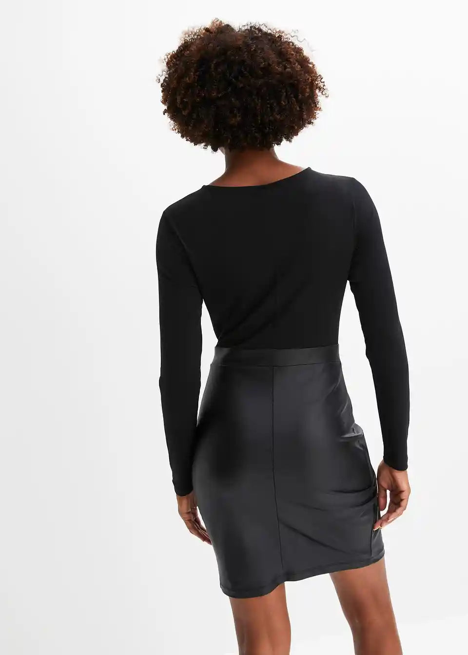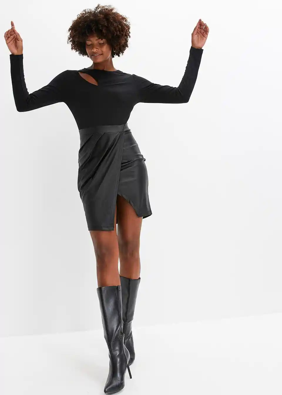 Haljina od imitacije kože s gornjim dijelom od jerseya