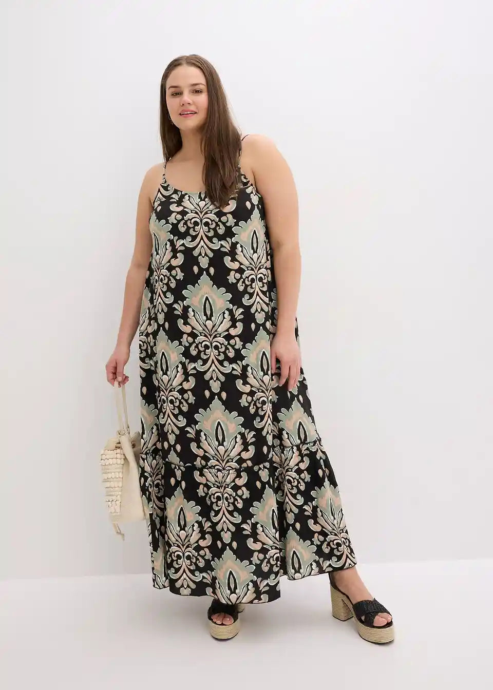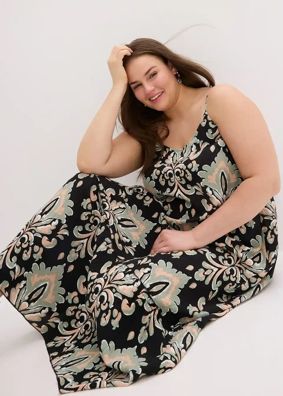 široko krojena haljina s naramenicama maxi dužine od strukturirane viskoze