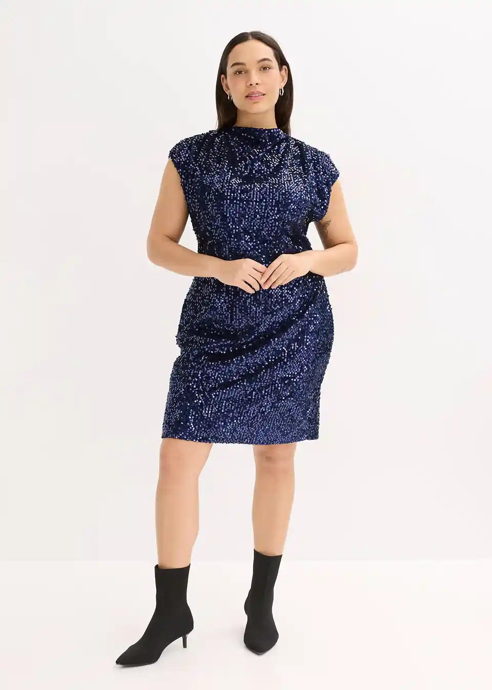 figuru naglašavajuća haljina s Paillettima s ramenim jastučićima i naboranim detaljem na ramenu