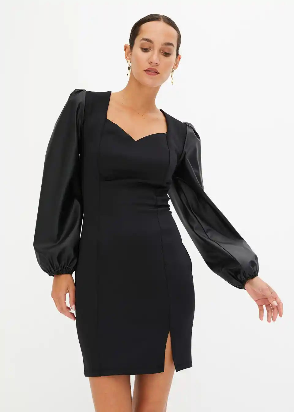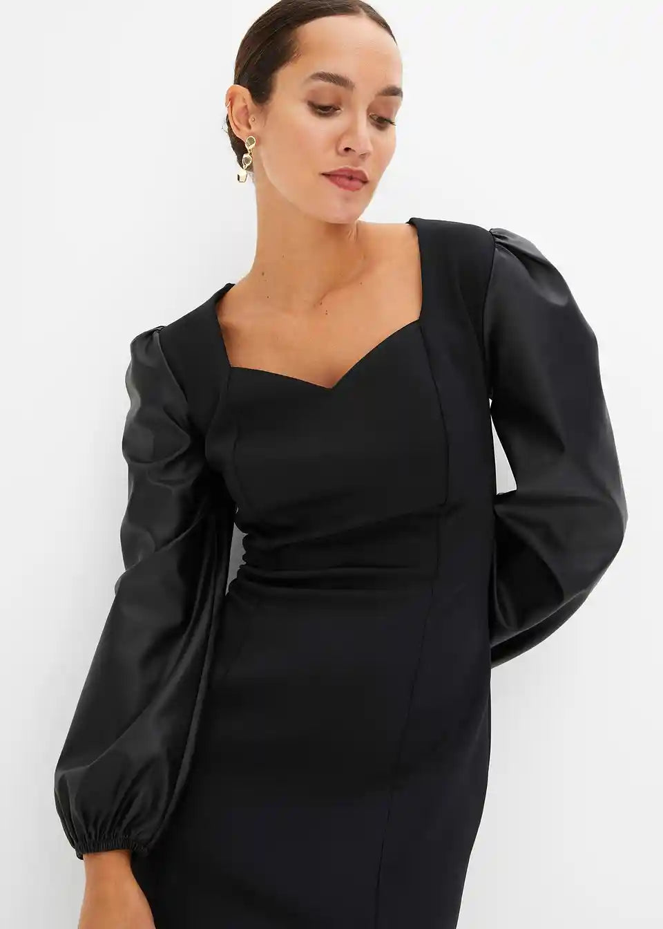 Moderna haljina u poslovnom stilu s rukavima od imitacije kože