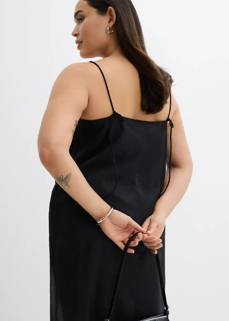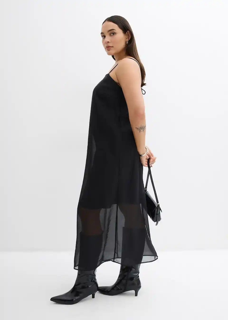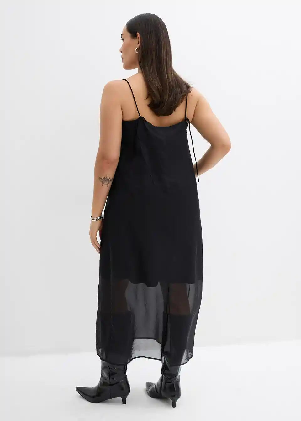 Maxi haljina sa spaghetti naramenicama u mješavini materijala s prozirnom gornjom haljinom