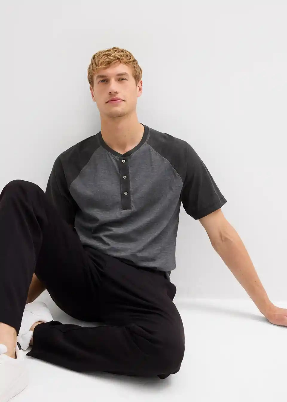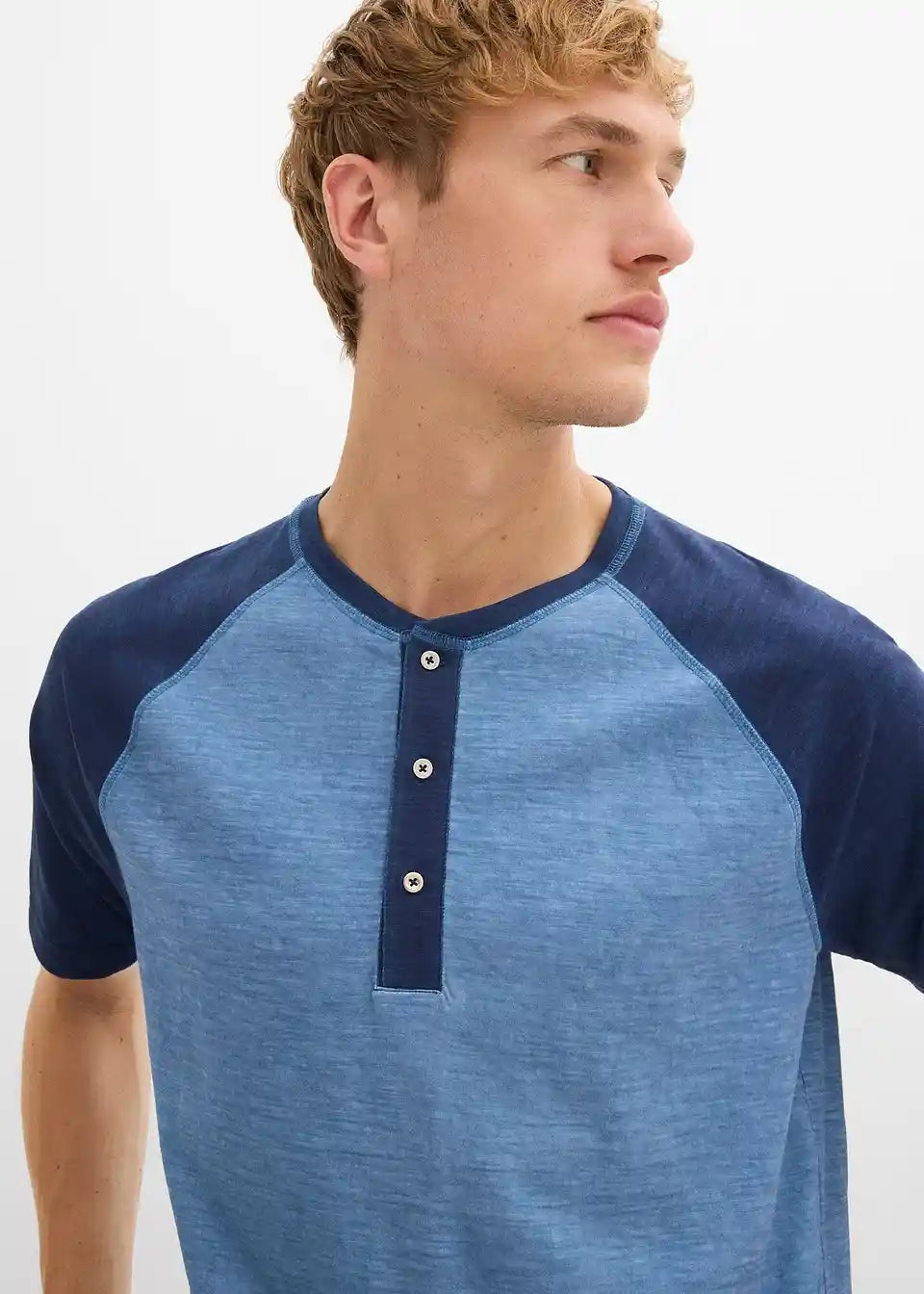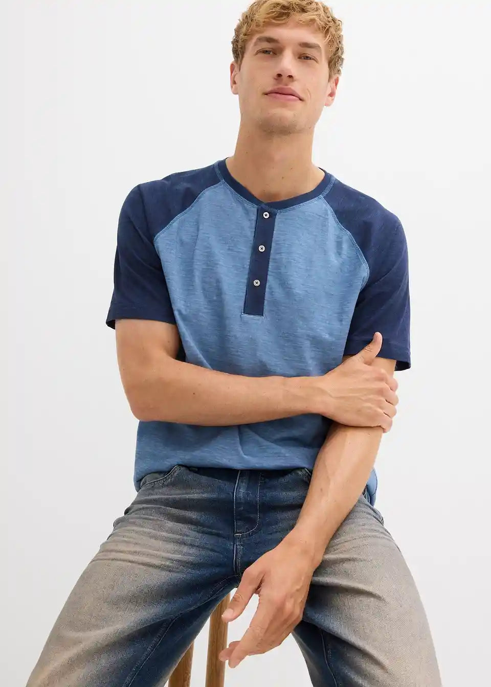Robustan Henleyshirt u modernom vintage izgledu s raglan rukavima – svaki komad je unikat!