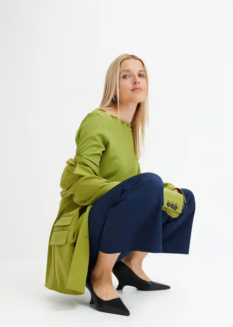Moderne twill hlače s visokim strukom i lepršavim nogavicama