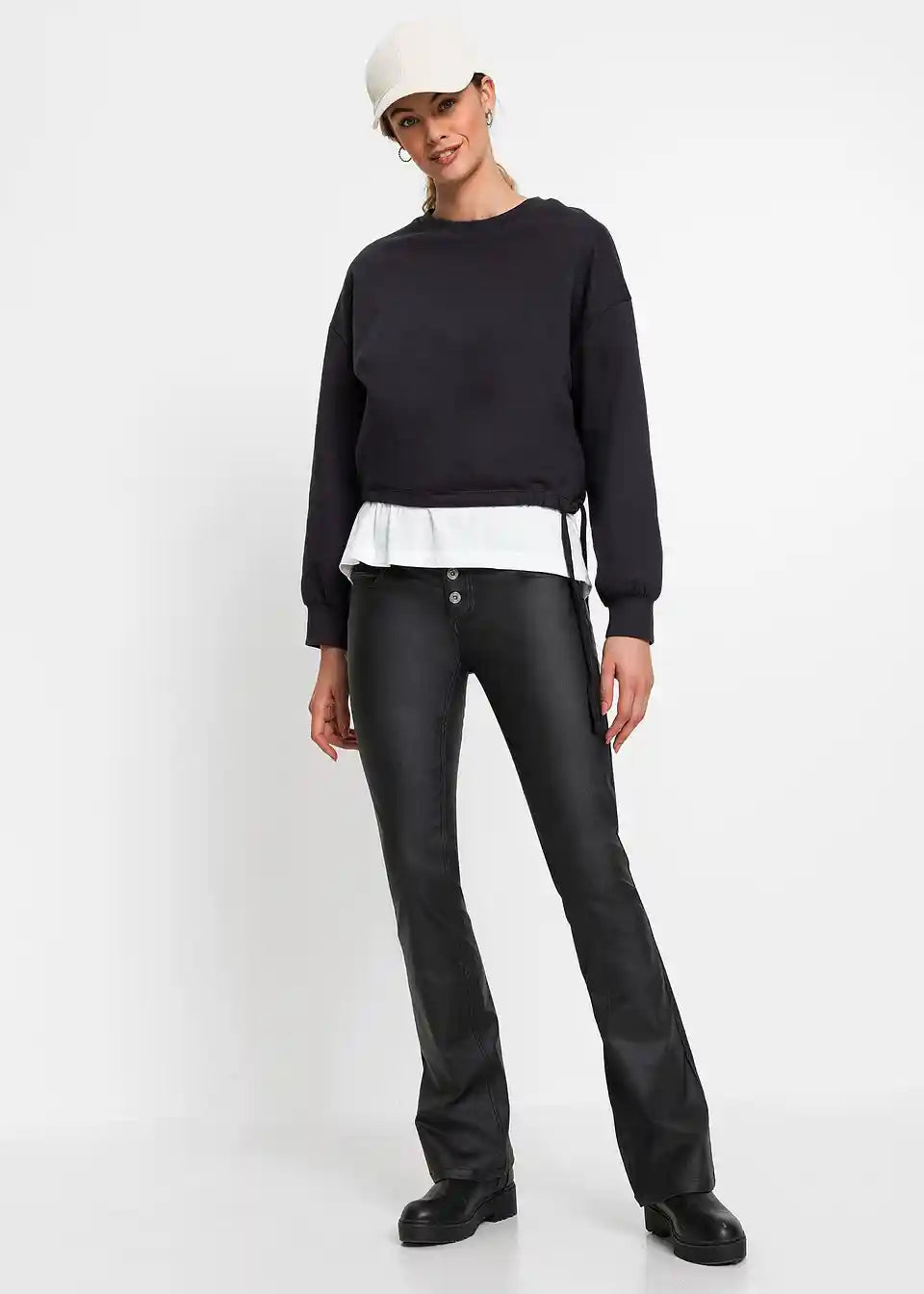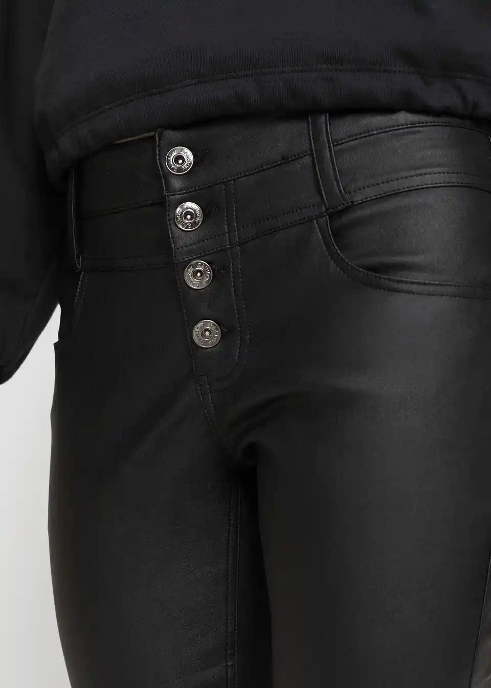 Moderne trapez hlače od imitacije kože s vidljivim redom gumbi