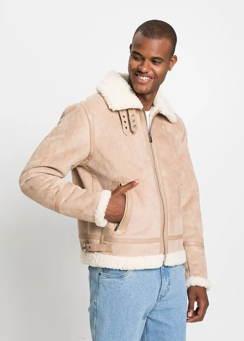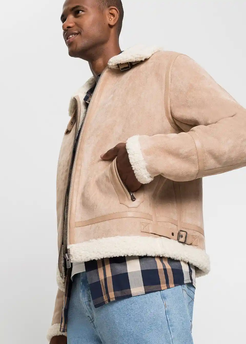 Robusna bomber-jakna od imitacije kože s Teddy podstavom