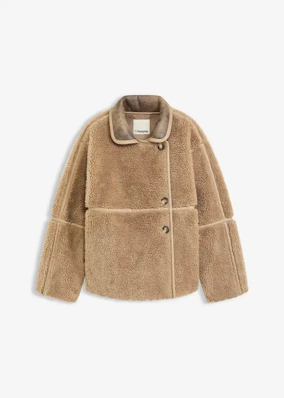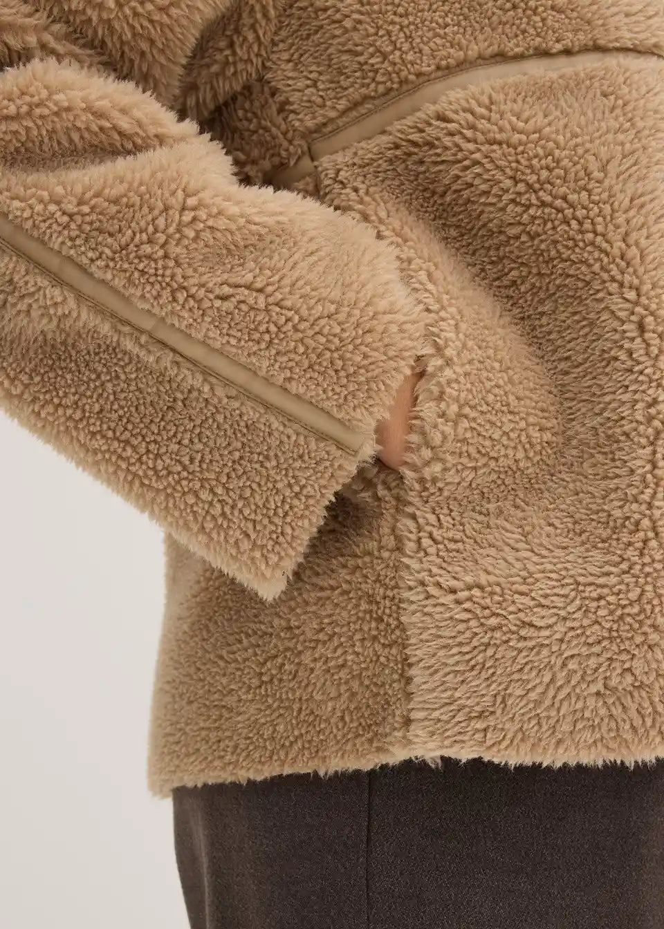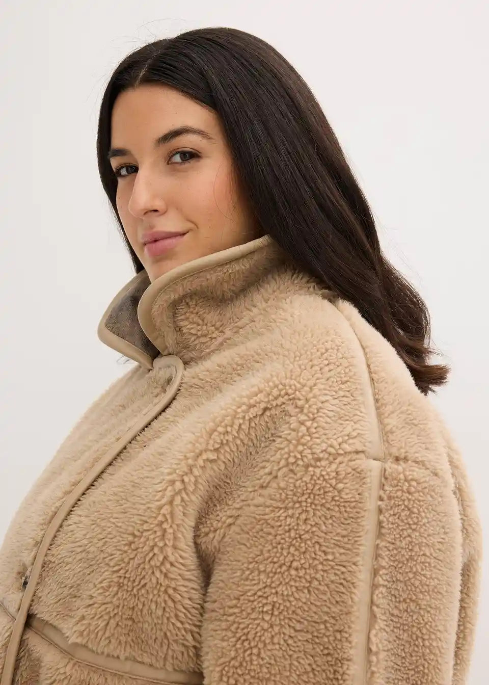 Meka jakna od teddy flisa s paspulom od imitacije kože