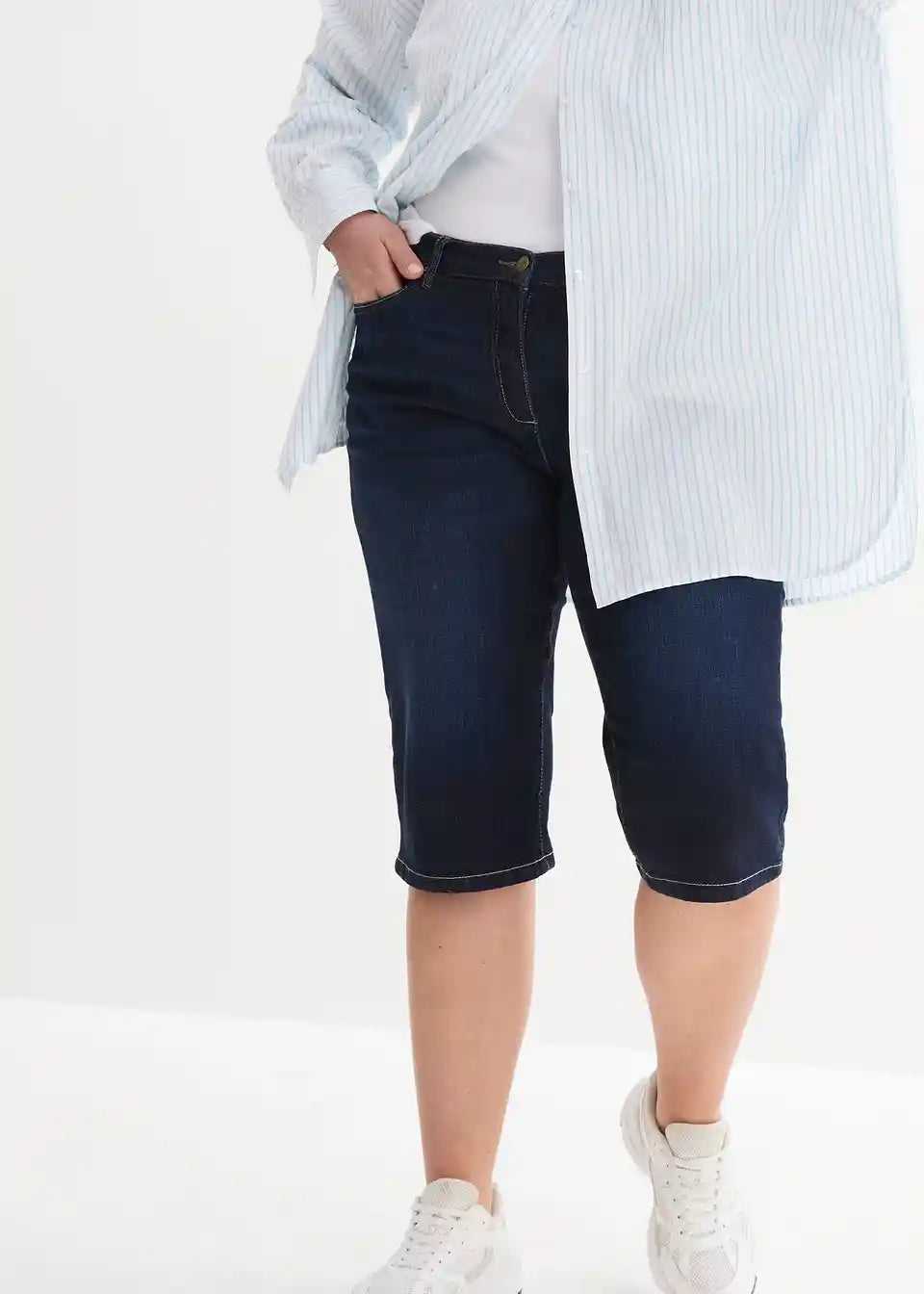 Pravi univerzalni komad za žene koje cijene sportsku odjeću su ove udobne Boyfriend stretch bermude od bpc-a. Šire krojene jeans bermude osvajaju udobnim pristajanjem i bočnim rastezljivim gumicama u pojasu. 5-džepni dizajn i blaga izbjeljivanja osiguravaju moderan izgled. Hlače do koljena u Loose Fit kroju mogu se zavrnuti, a zatvaraju se na gumb i patentni zatvarač.