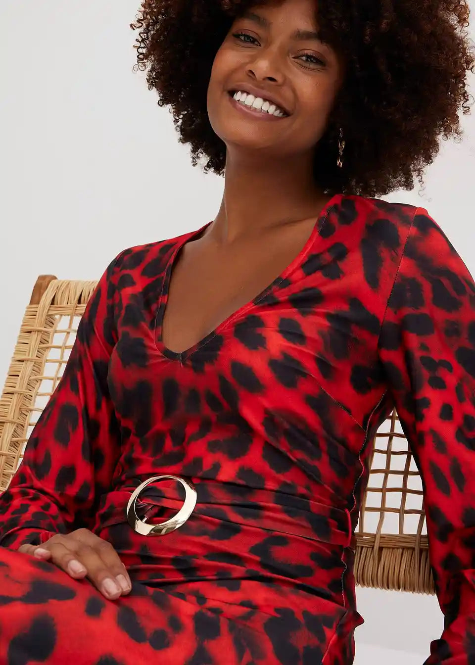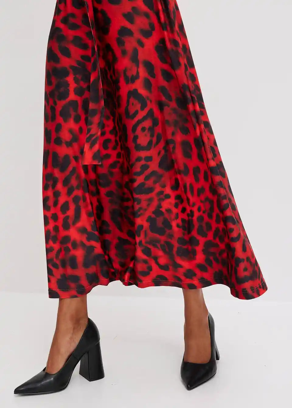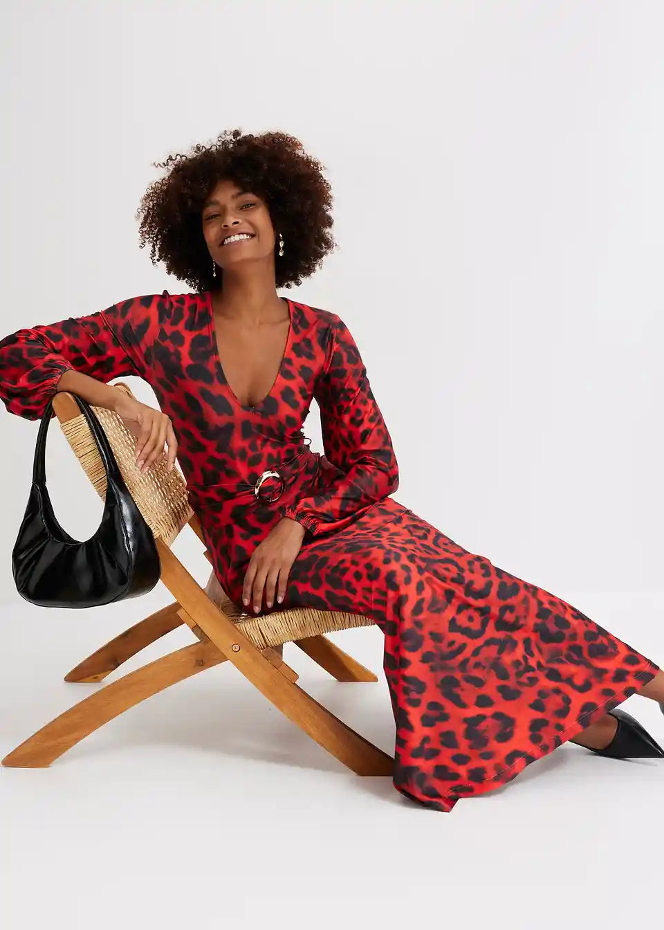 Moderna i ženstvena: maxi haljina od jerseya s pojasom u struku i metalnim prstenom.