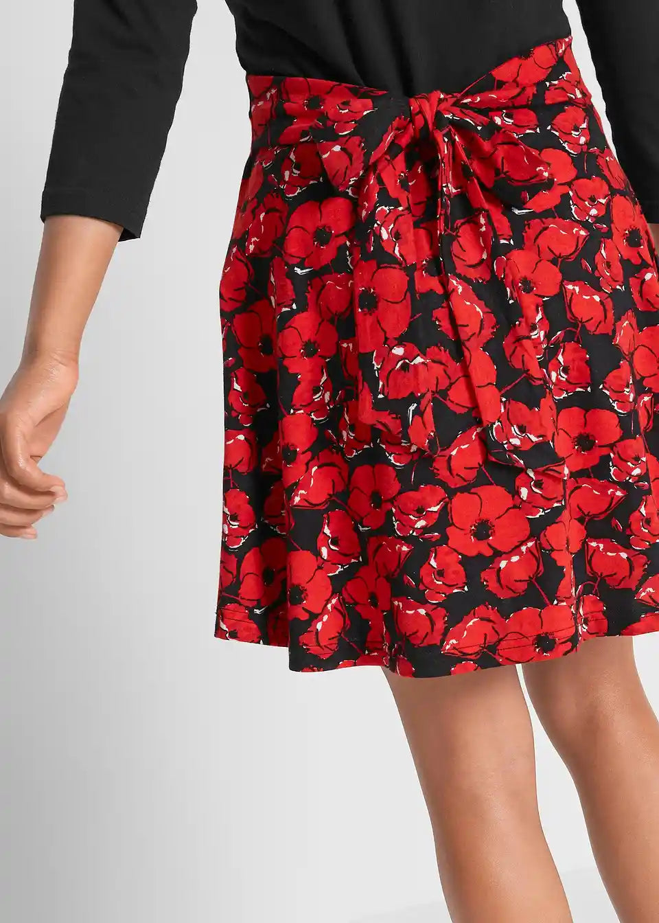 Prekrasna, dugačka Jerseykleid s modernim cvjetnim printom na donjem dijelu. Pojas za vezanje je optički naglasak. Haljina se savršeno može kombinirati s tajicama i gležnjačama za hladnije dane.