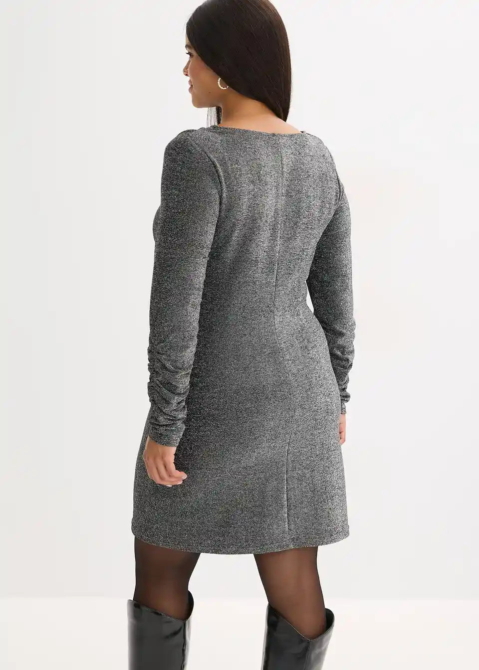 Moderna haljina s naglašenim ramenima i naborima na rukavima