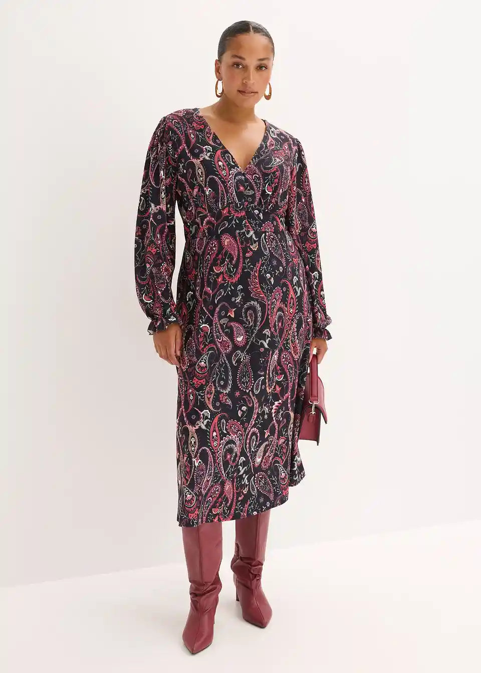 ženstvena Jerseykleid midi duljine s raskošnom suknjom