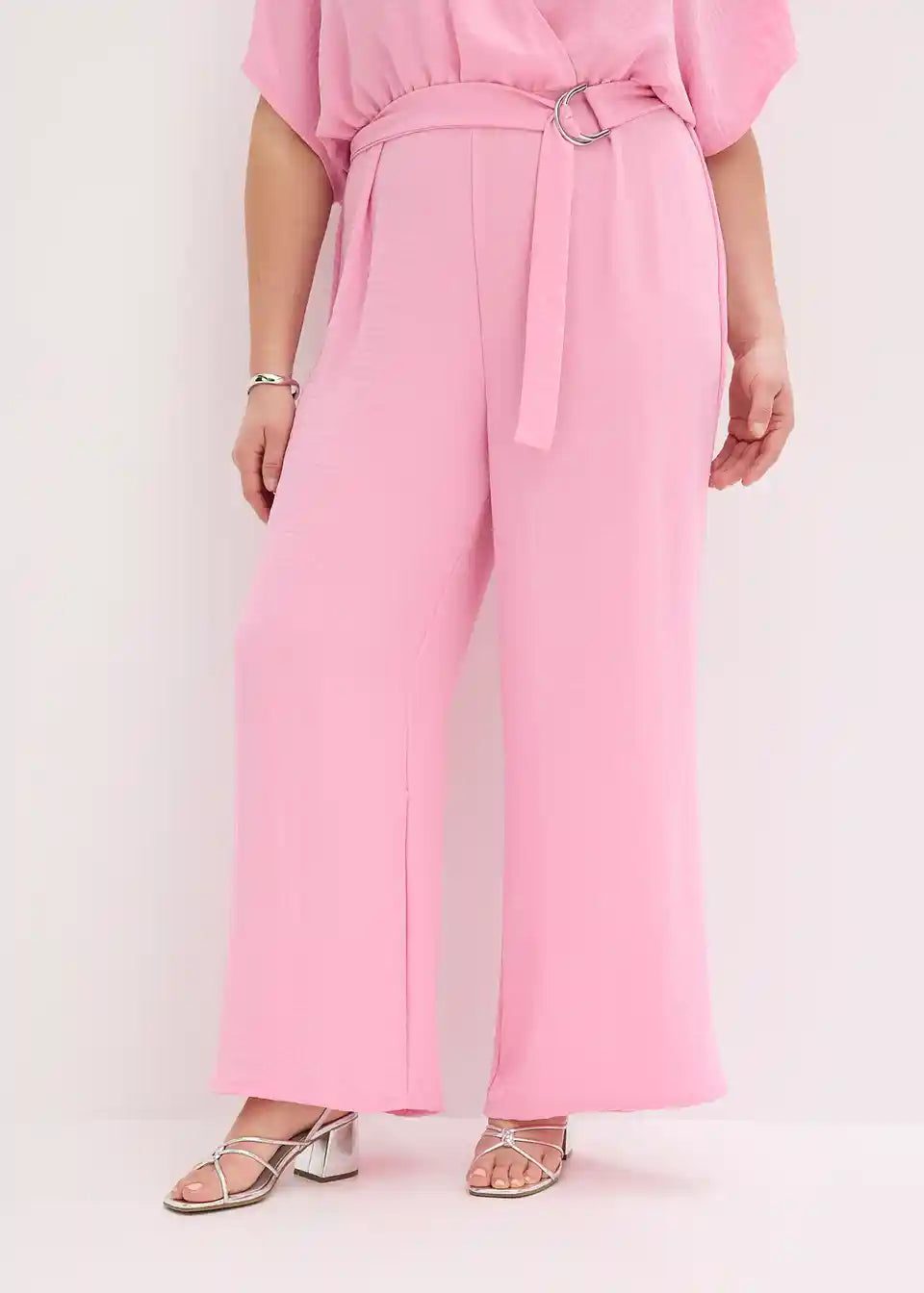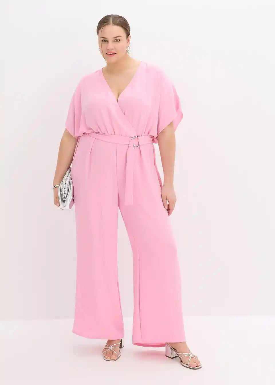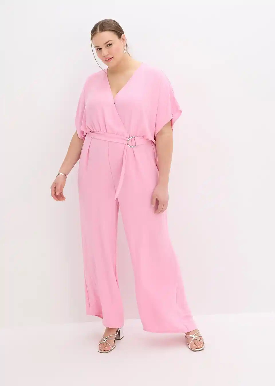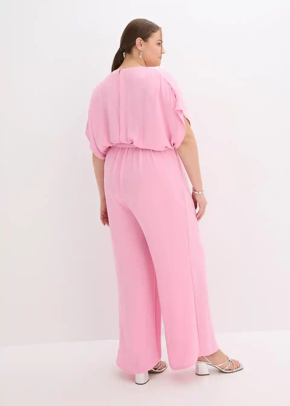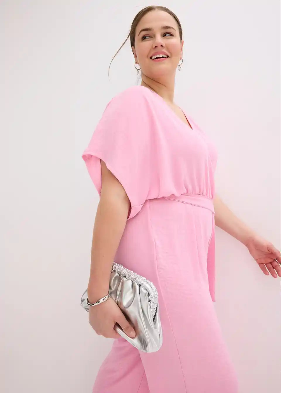 široko krojeni jumpsuit s modernim detaljem vezivanja u struku i kopčanjem na gumb na stražnjoj strani izreza