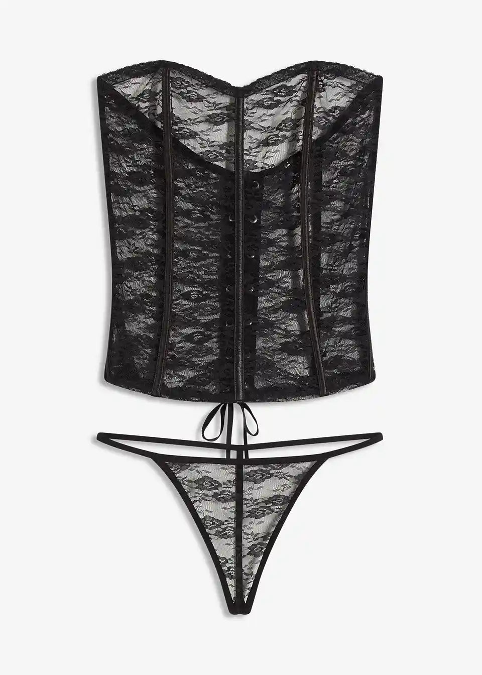 Korset + tanga gaćice od čipke (set od 2 dijela) za vezanje na leđima.