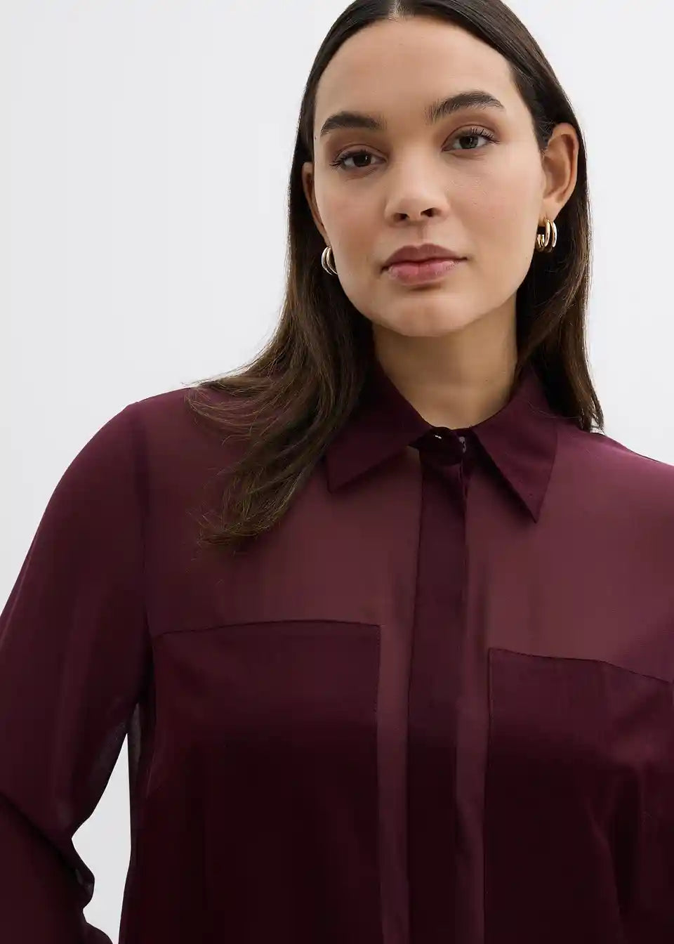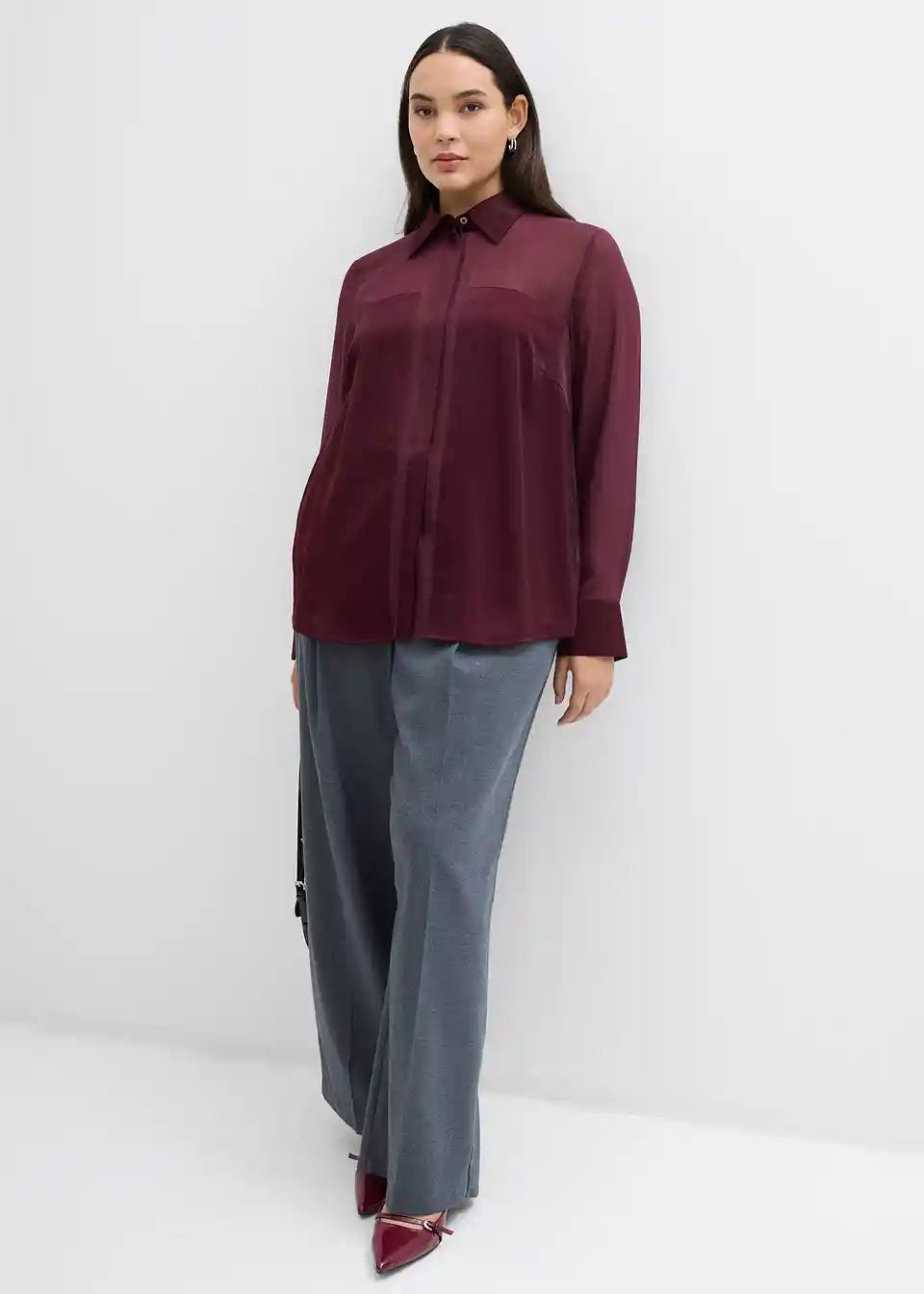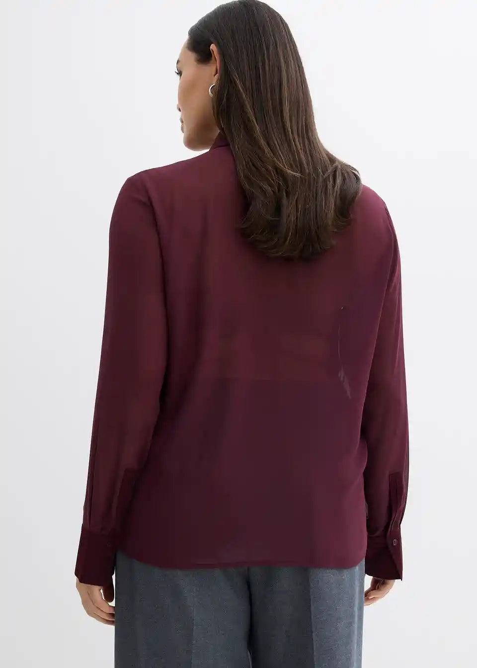 Ravno krojena bluza od lepršavog materijala s košulja-ovratnikom, dugim rukavima s gumbima i kopčanjem na gumbe sprijeda